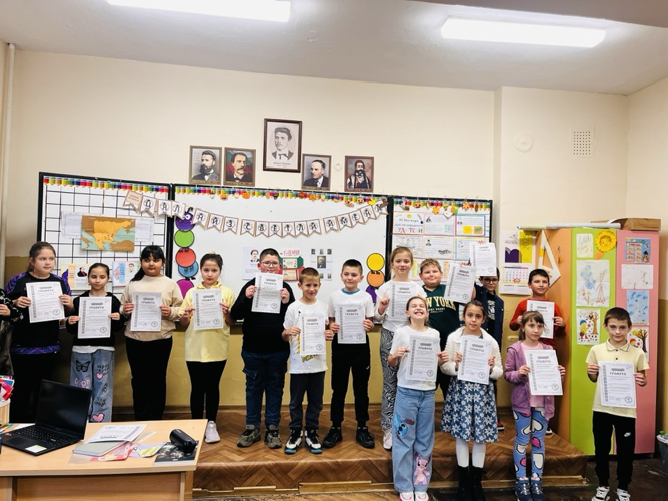 Приемственост и празник: Четвъртокласниците с класни ръководители г-жа Диана Попова и г-жа Петя Петкова бяха домакини на скъпи гости – децата от IV група на ДГ „Славейче“. Срещата, изпълнена с народни танци, песни и стихове, се превърна в истински празник на българския дух.