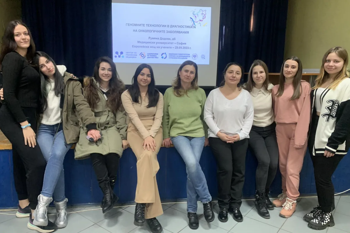 Във връзка с това на 11.01.2024 г. в СУ "Стоян Заимов" - гр. Плевен се проведе среща с г-жа Румяна Додова, молекулярен биолог от Центъра по молекулна медицина към МУ-София, която да направи презентация на тема: "Геномните технологии в диагностиката на онкологичните заболявания".