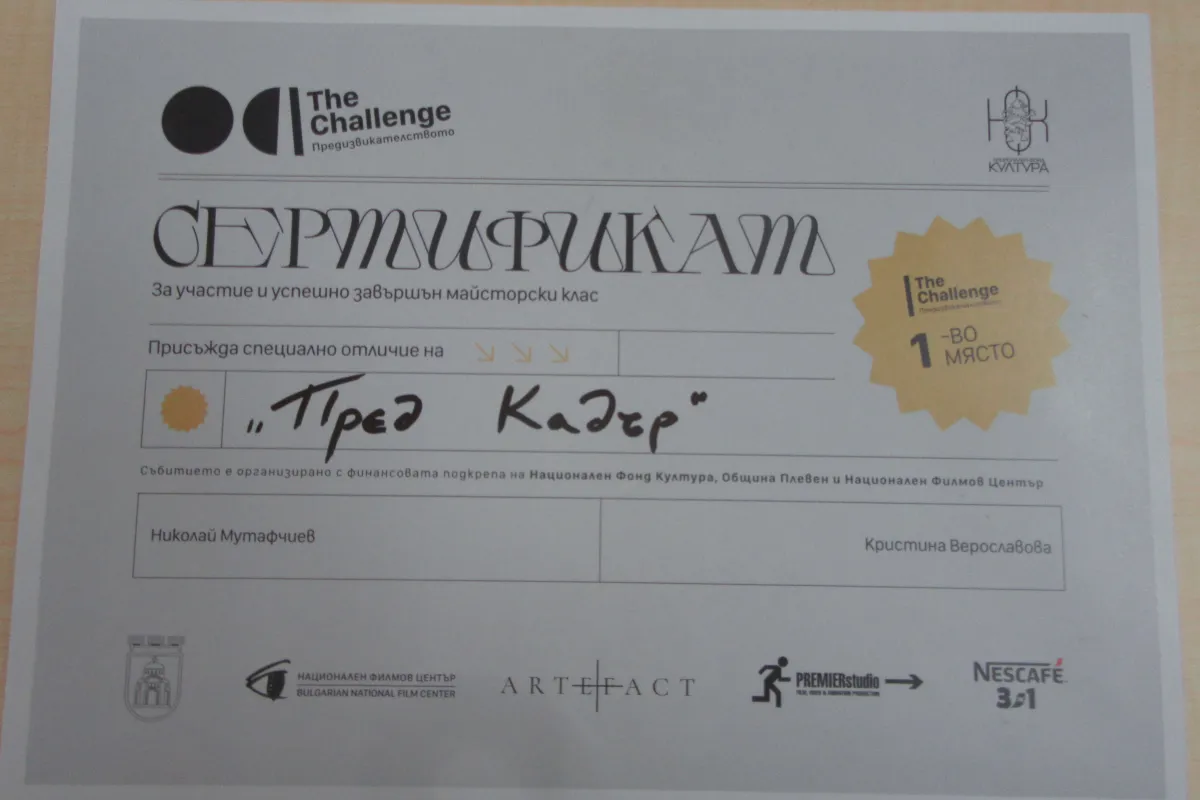 ПЪРВО МЯСТО В КИНО ПРОЕКТА "ПРЕДИЗВИКАТЕЛСТОВОТО 2024"