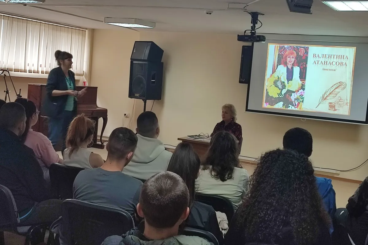 В рамките на Маратона на четене, отдел „Обслужване на читателите” при РБ”Хр.Смирненски” , организира среща-разговор на ученици от СУ”Ст. Заимов”- Плевен с плевенската поетеса - Валентина Атанасова. Авторката бе представена с кратка презентация и изложба от нейни книги, а учениците й зададоха интересни въпроси свързани с процеса на писане и начина на издаване на книги. За някои от деветокласниците, това бе първа среща с изявен творец и се превърна в сърдечно и емоционално преживяване за тях.