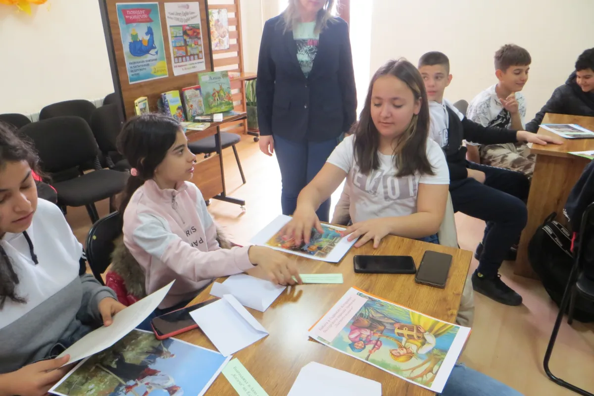 В рамките на “Националния маратон на четенето “ , в зала Игротека се проведе двуезично литературно занимание “В търсене на книжното съкровище/Book Treasure Adventure|” с ученици от СУ “Ст. Заимов“ и преподавател Г. Парушева. Шестокласниците се състезаваха в литературната игра “Познай произведението и героите“, участваха във викторината “ Literary Reading Quiz on Favorite English Books“. Чрез забавни задачи на английски език учениците търсиха и откриха любимите си детски книги във фонда на отдел “Чужди езици“.