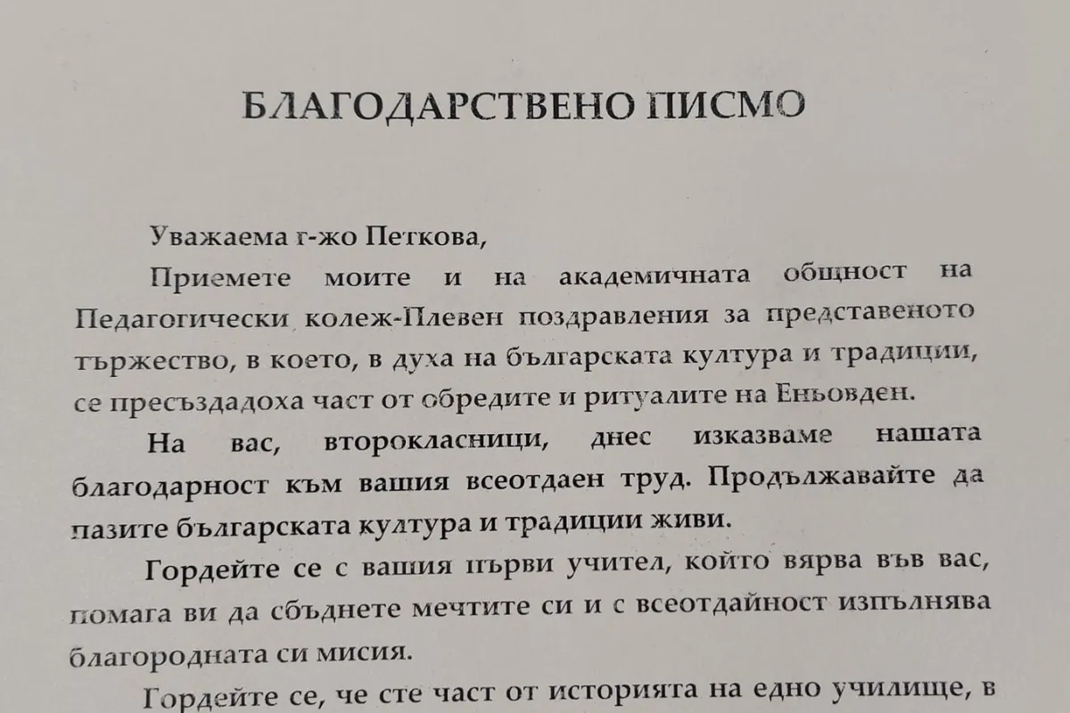 Показател за представянето на учениците е благодарственото писмо изпратено от директора на Педагогическия колеж - доц. д-р Боряна Здравкова.