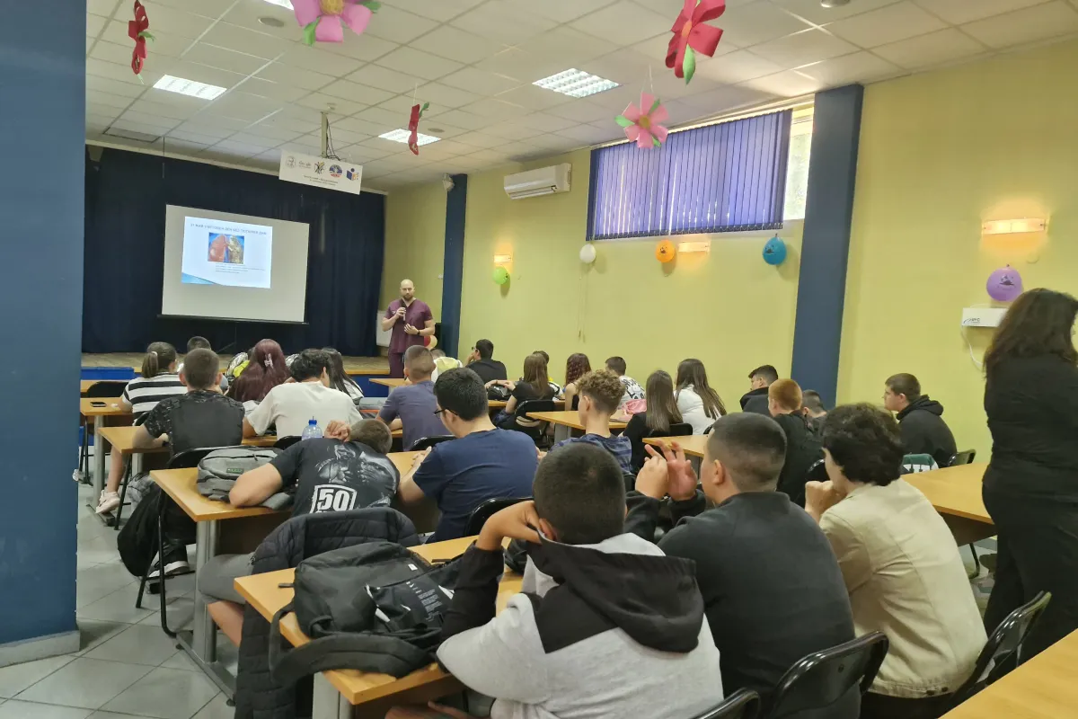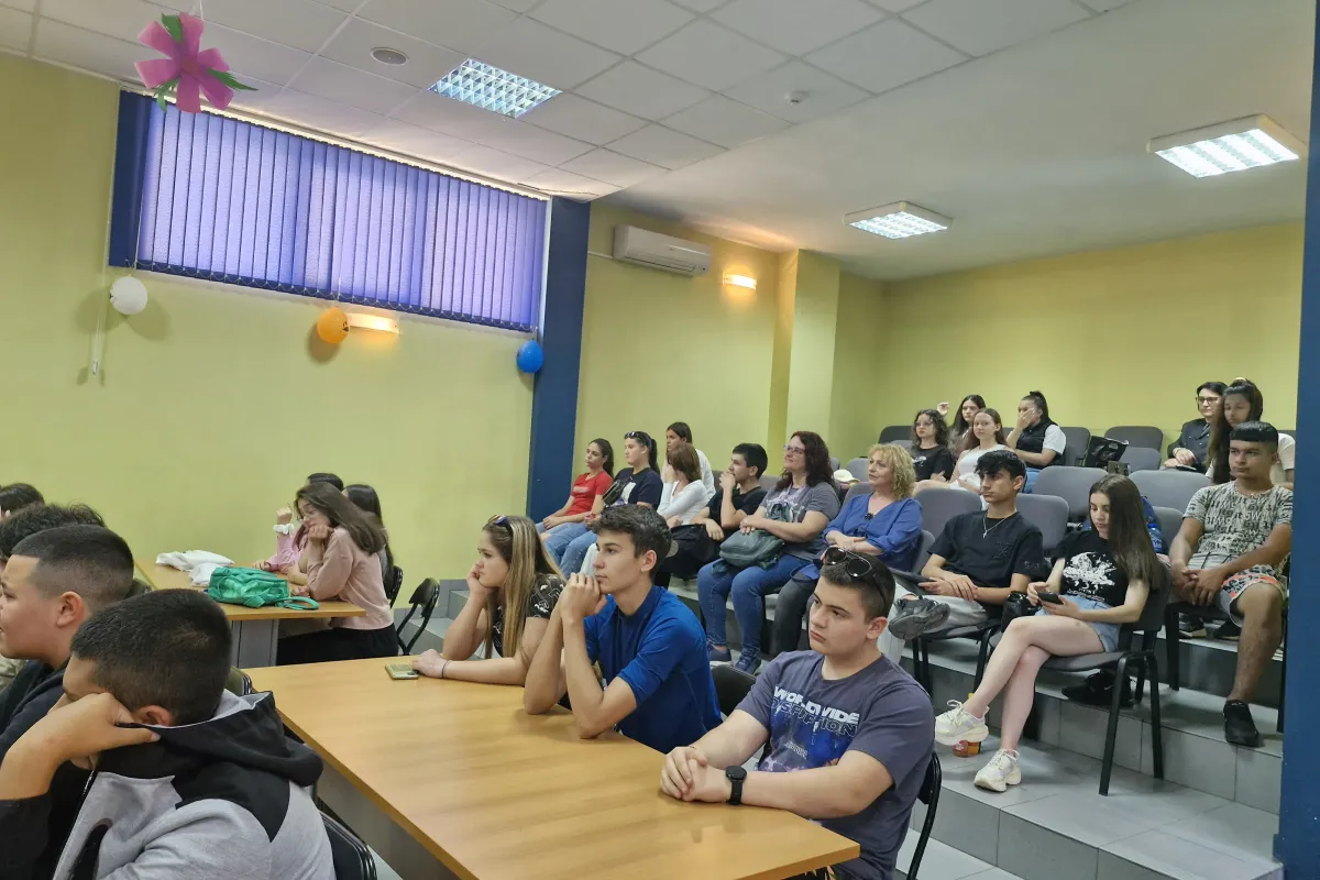 Учениците от осмите и деветите класове с внимание слушаха и задаваха въпроси, които ги интересуват по темата.
