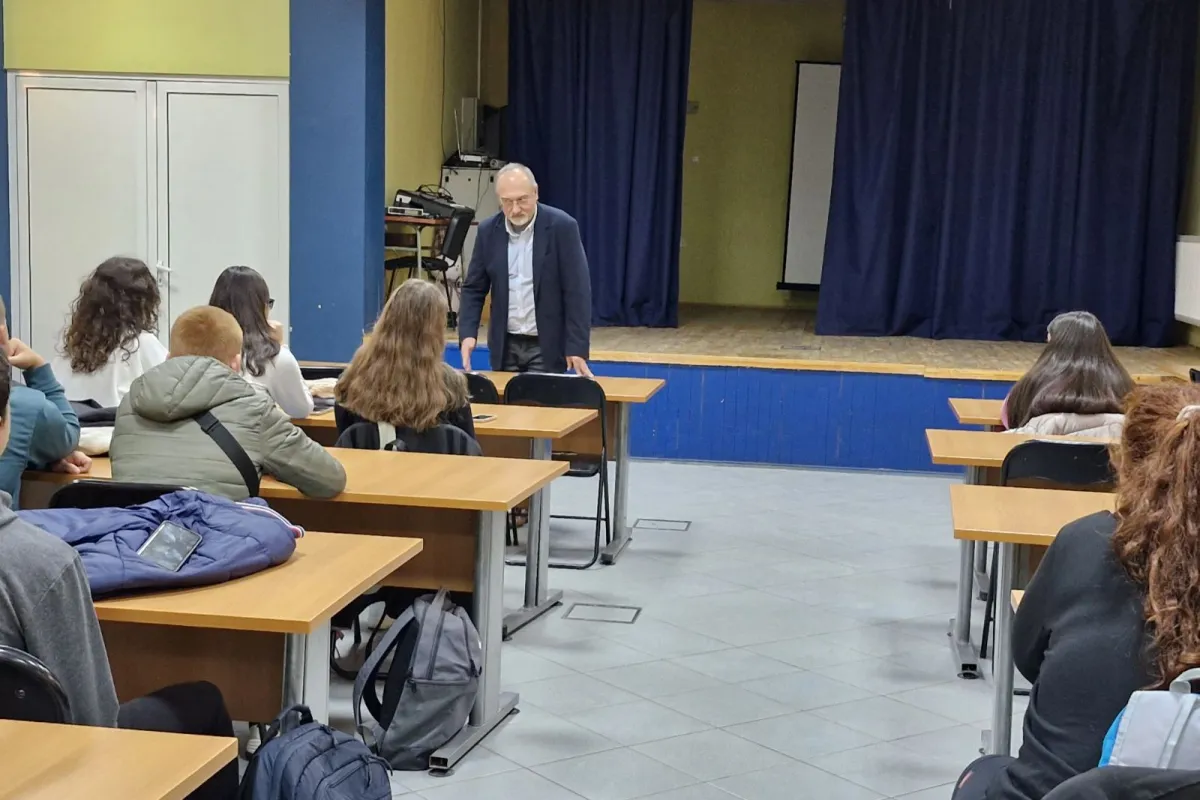 Деканът на факултета - проф. д-р Румен Томов се срещна с група ученици от гимназиален етап, на които представи идеи за бъдещо партньорство.