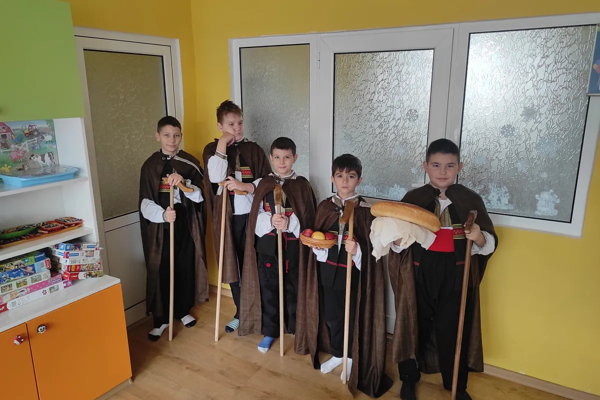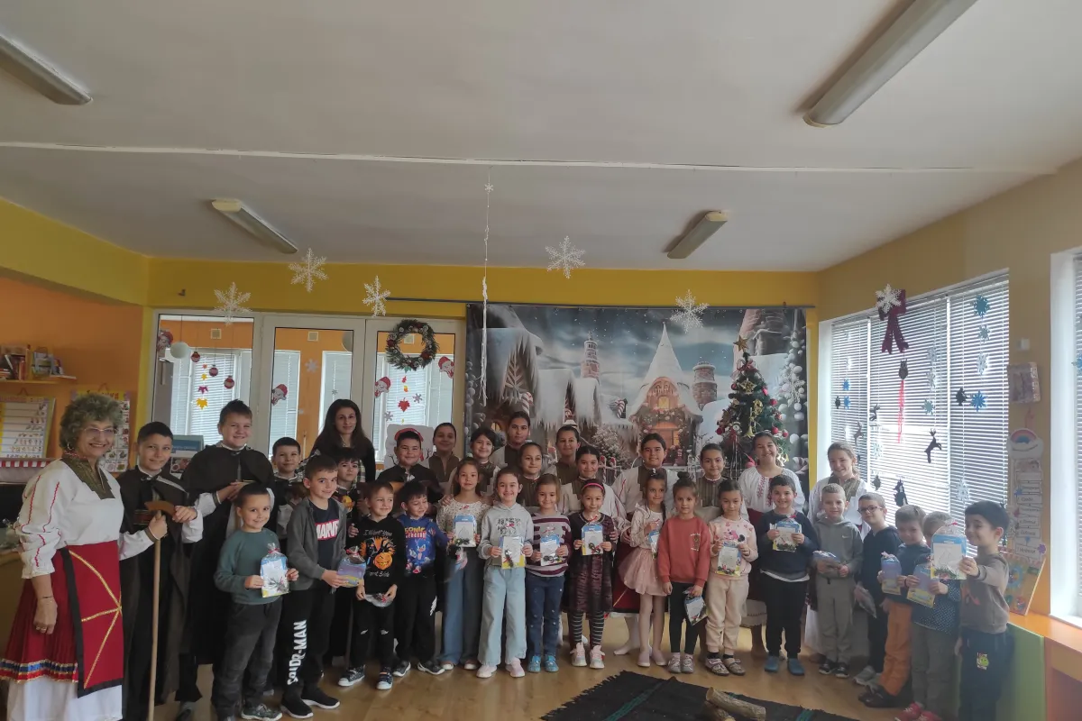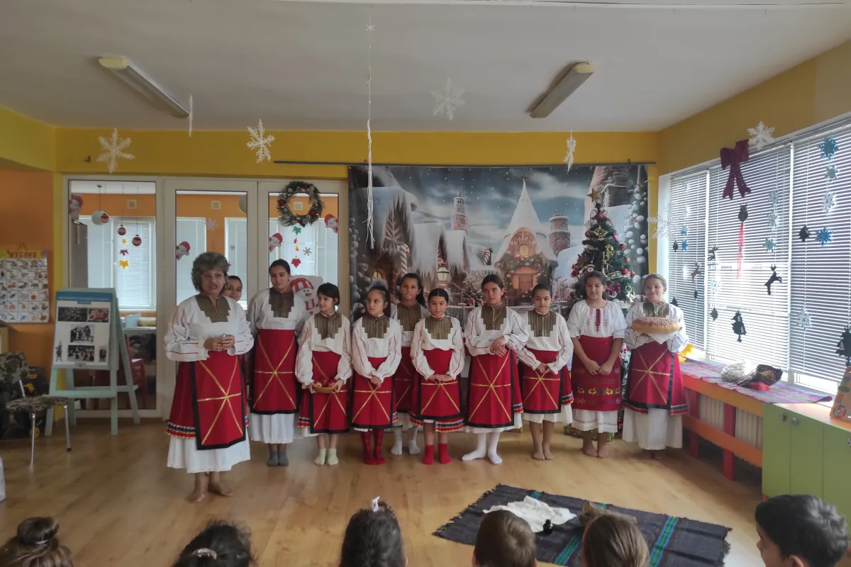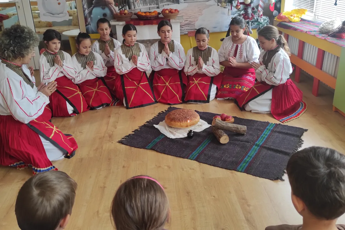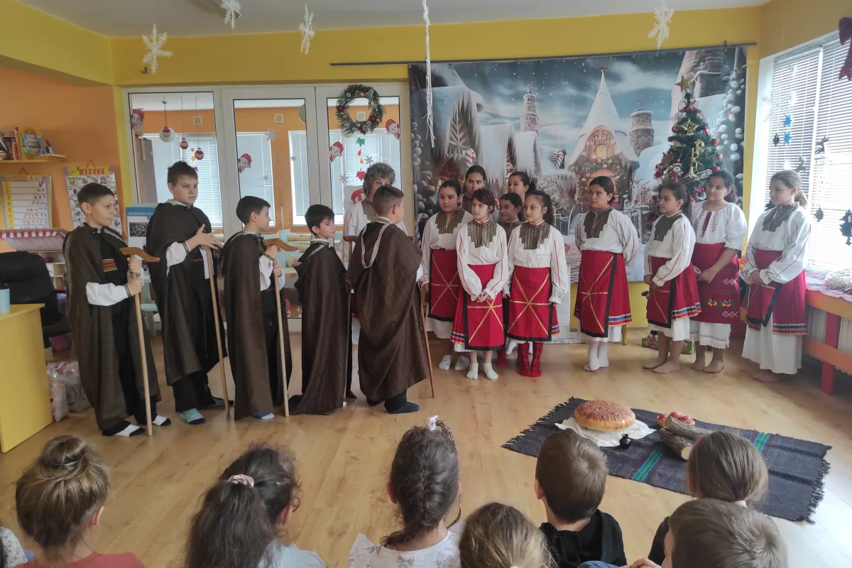 Учениците от IVа клас с класен ръководител Наталия Игнатова и IVб клас с класен ръководител Зорница Тревненска, представиха традиционен обичай за Бъдни вечер на децата от подготвителна група за плавен преход от детската градина към първи клас.