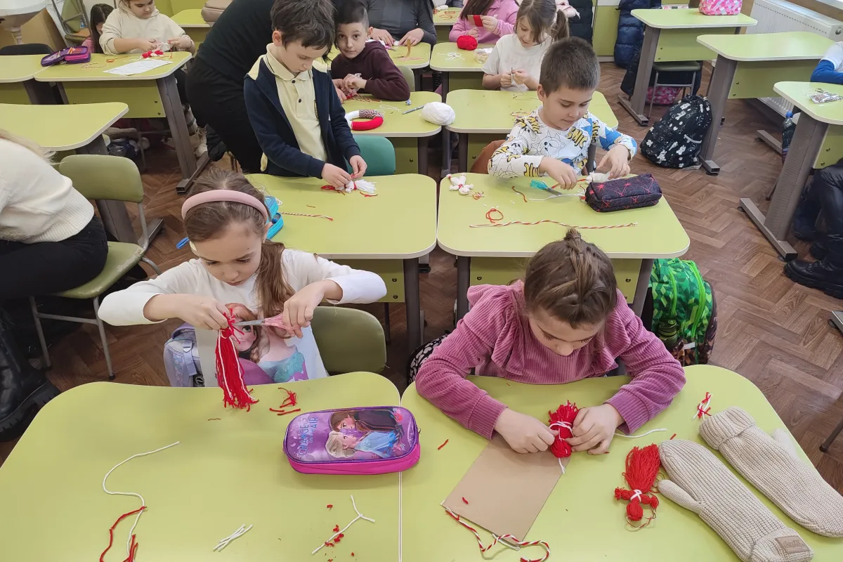 На 18 февруари в 1.а клас се проведе вдъхновяваща мартенска работилница с участието на родители, ученици и учители. Под ръководството на класния ръководител - Валентина Василева и учител ЦОУД - Десислава Пешева, децата се запознаха с българската традиция за изработване на Пижо и Пенда, както и на красиви мартенички за ръката.
