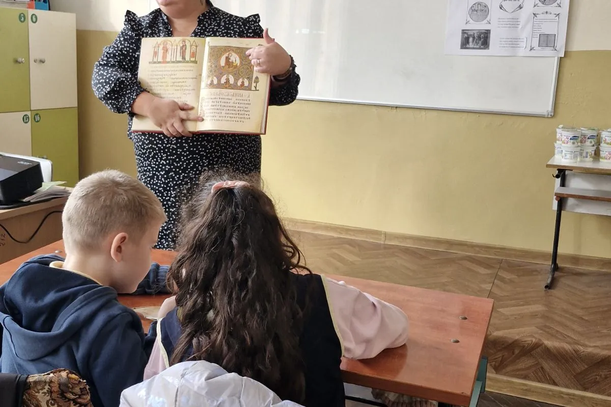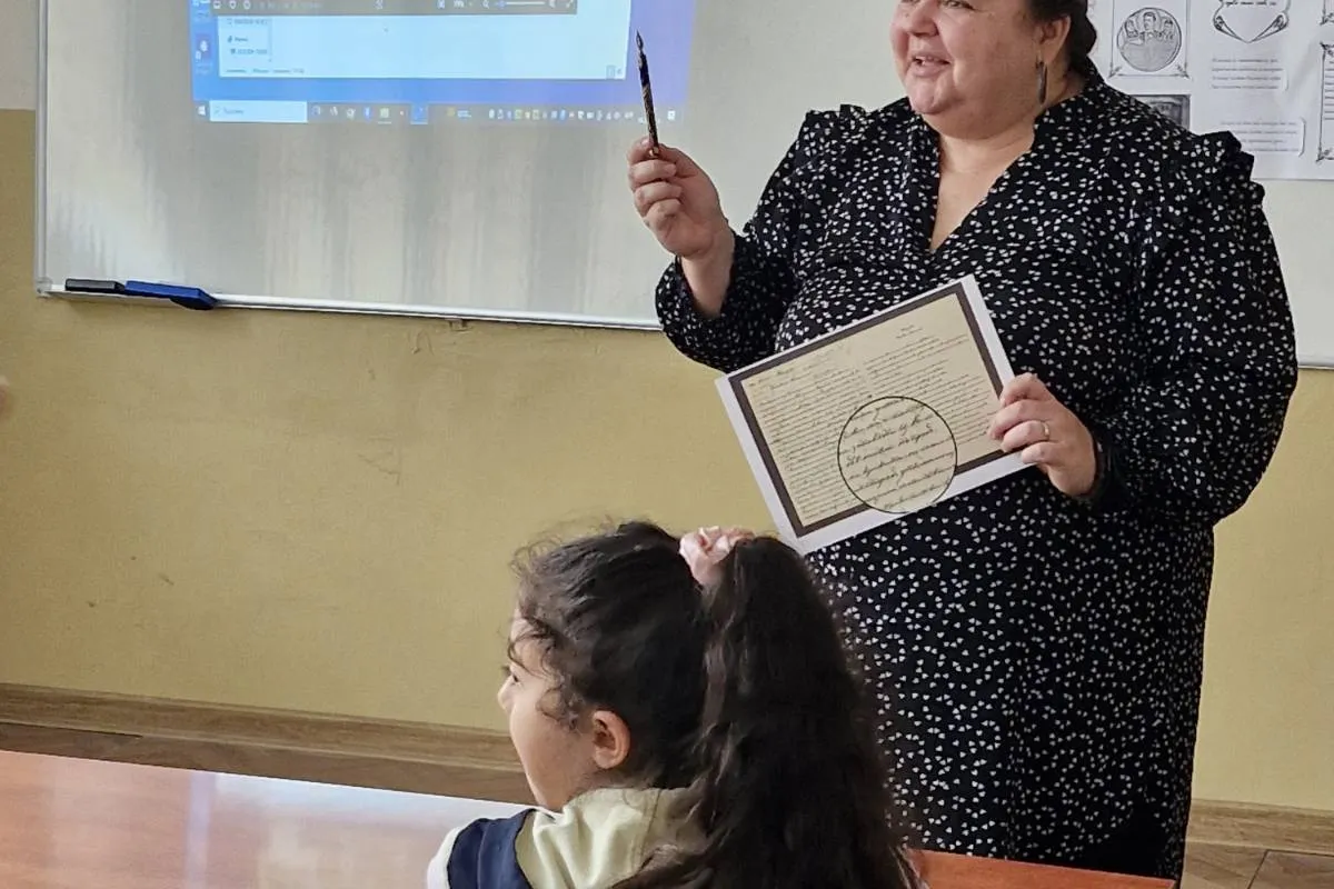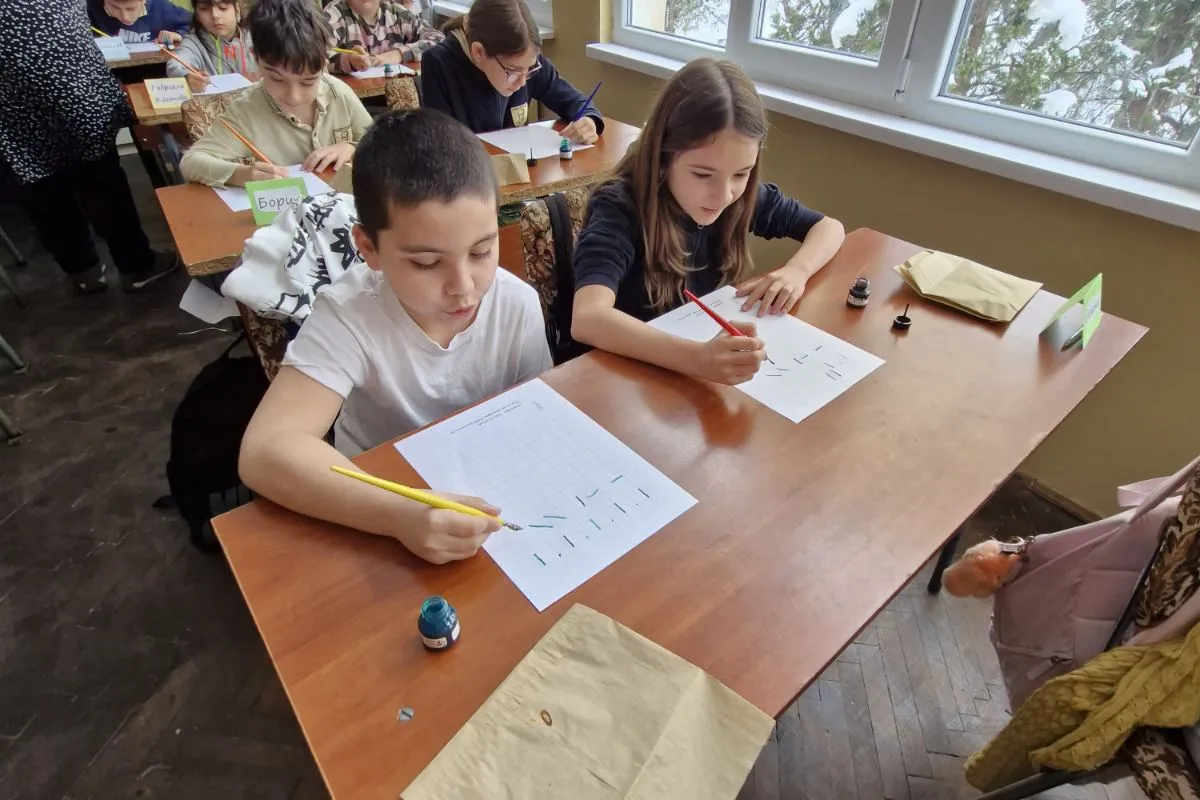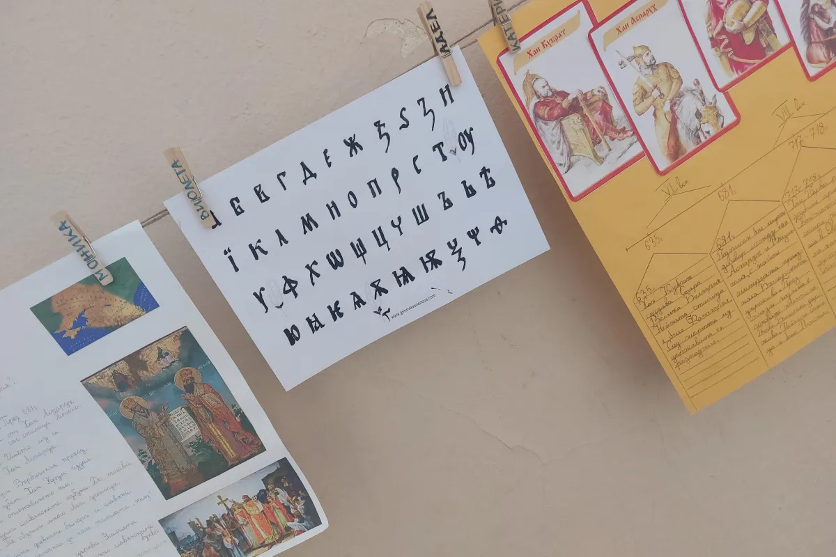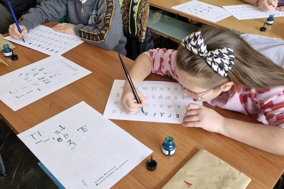 Всеки ученик получи перодръжка и мастилничка. С усърдие писаха букви от старобългарската азбука.