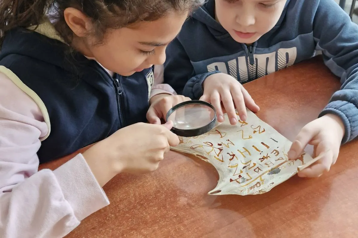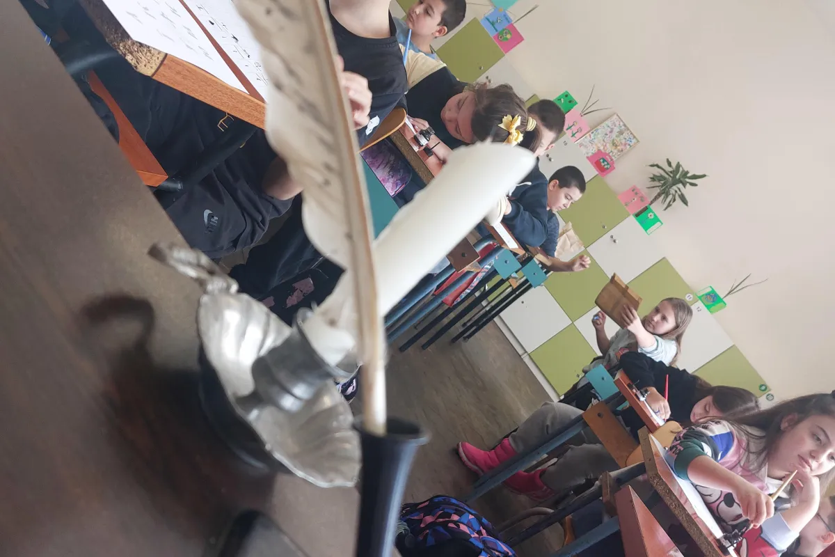 Учениците от третите класове се запознаха с тайните на красивото писане и магията на изкусното творене с перо и мастило, под умелото ръководство на г-жа Геновева Ненова! По увлекатален начин тя разказа за изработването и писането на книги във времето на създаване на писмеността ни. Учениците се докоснаха до папирус, изучаваха го с лупа.