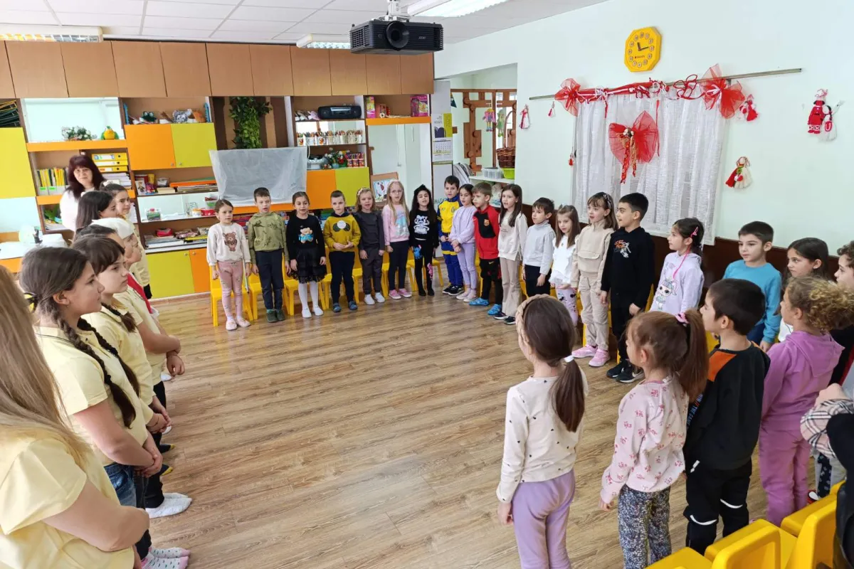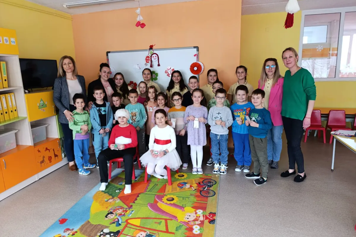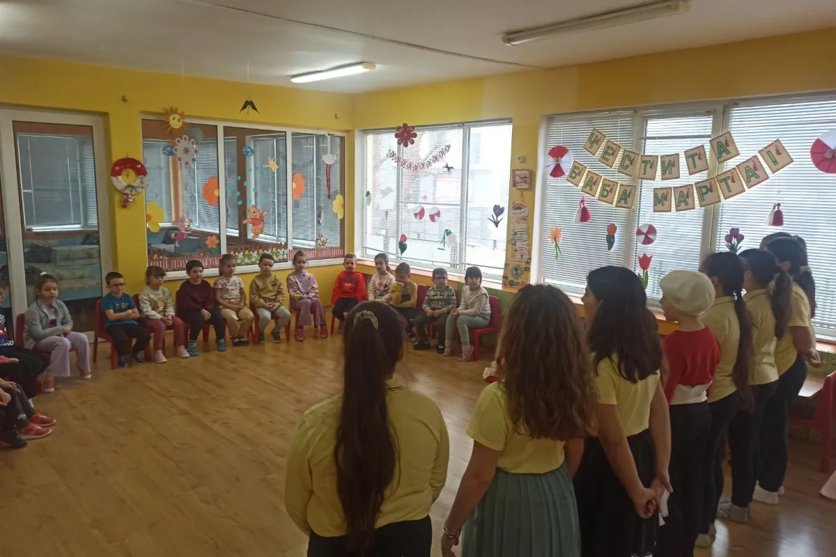 Ученици от СУ "Стоян Заимов", посетиха детските градини "Първи юни", "Еделвайс", "Зорница", "Гергана" и "Незабравка", като продължиха традицията за приемственост между институциите. Пижо, Пенда и техните помощници поднесоха своя поздрав към малките си приятели, като им разказаха за празника. Всички заедно пяха и танцуваха.