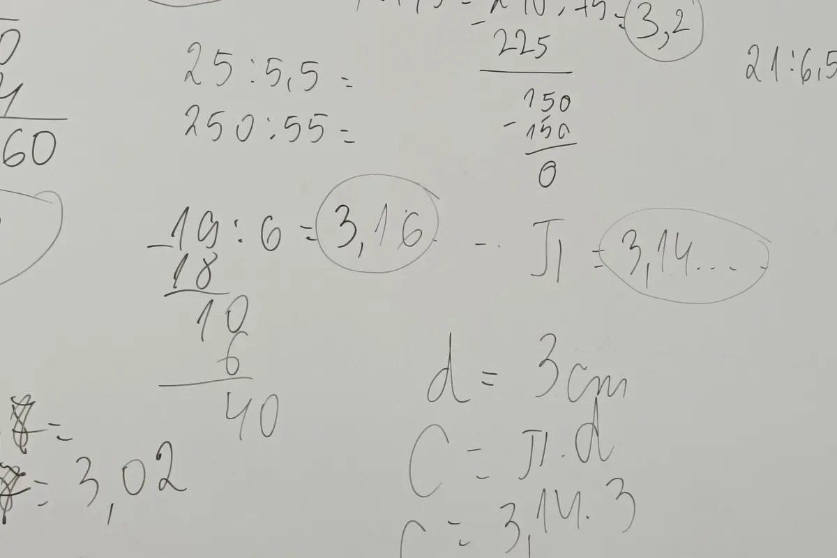 В часовете им по математика на 04.03.2025 г., те практически установиха, че частното на дължината на коя да е окръжност и нейния диаметър е едно и също число, което се означава с гръцката буква пи.