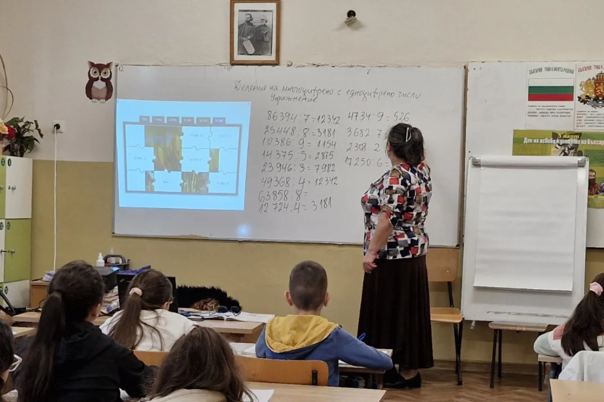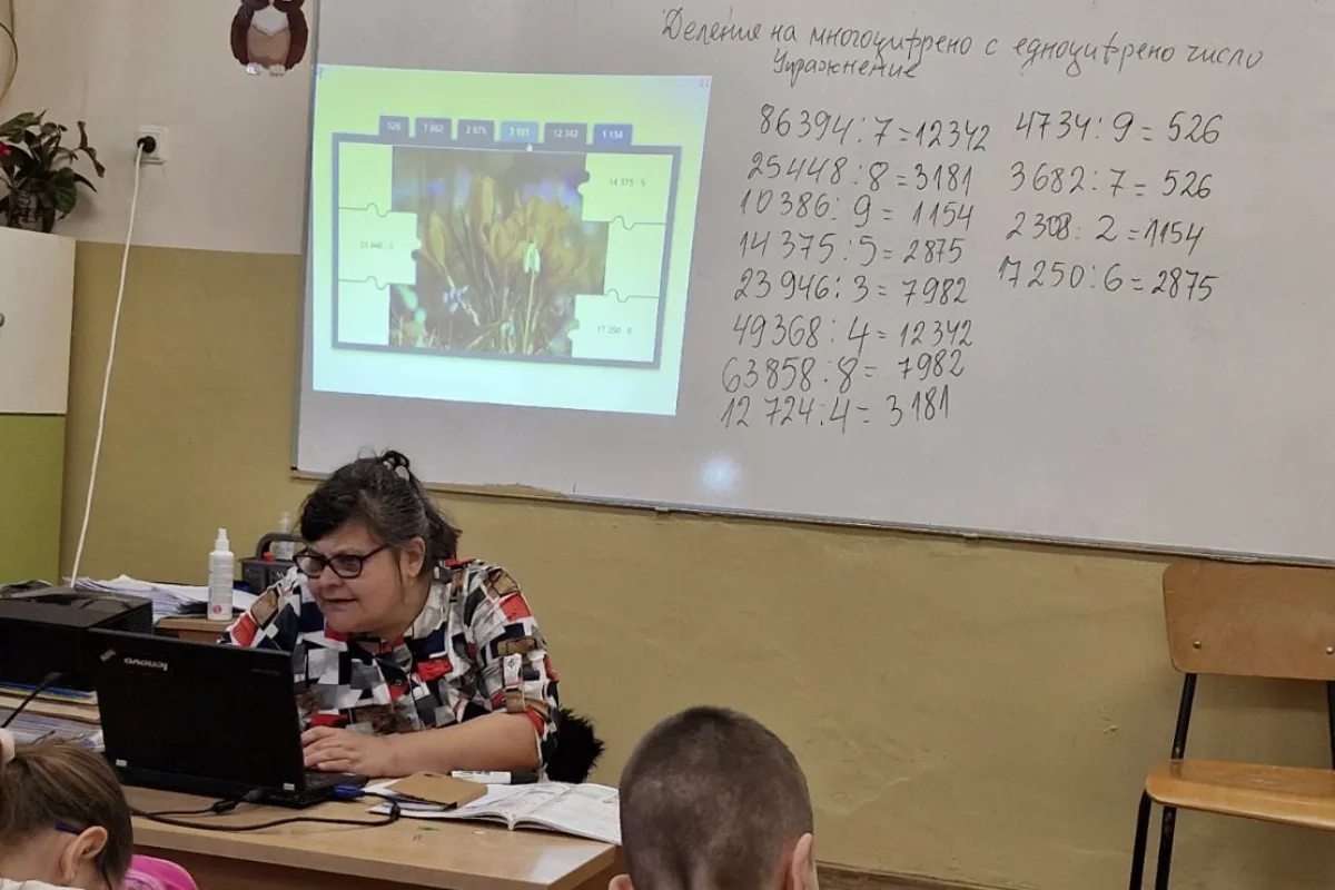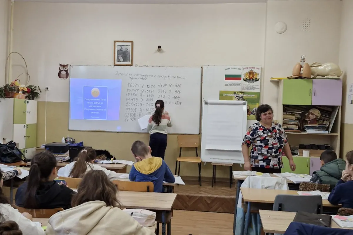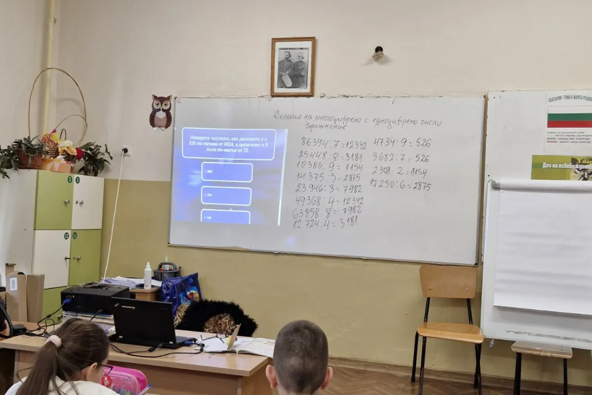 Днес, 12 март, г-жа Силвия Спирдонова (учител по математика V - VII клас) осъществи такъв урок с учениците от IVa и IVб клас. Темата е „Деление на многоцифрено с едноцифрено число“. В урока бяха използвани интерактивни методи на обучение. С различни игри от приложението LearningApps.org, учениците затвърдиха алгоритъма за деление на многоцифрено с едноцифрено число. С нетърпение очакваха да се нареди пъзела и да открият каква картинка се крие, откриха всички съвпадащи двойки и станаха по-богати със знания, след като решиха всички задачи в „Стани богат“. В края на урока, след като решиха поредица от задачи, и откриха каква буква се крие на гърба на листчето с отговора, учениците откриха българската поговорка “Който се учи, той ще сполучи“.