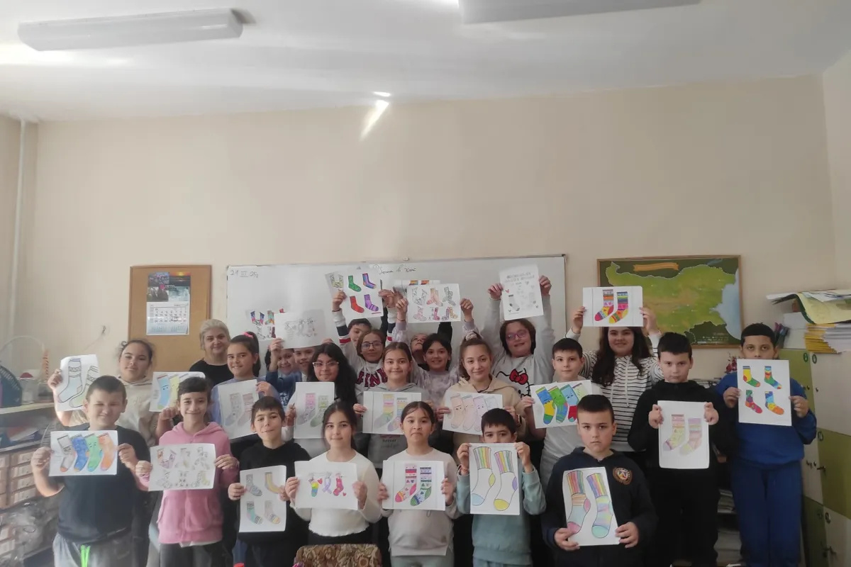 Учениците от IVб клас на СУ "Стоян Заимов" - град Плевен, съвместно с училищния психолог Грета Христова, оцветиха шарени чорапки в знак на съпричастност и проведоха разговор по темата.