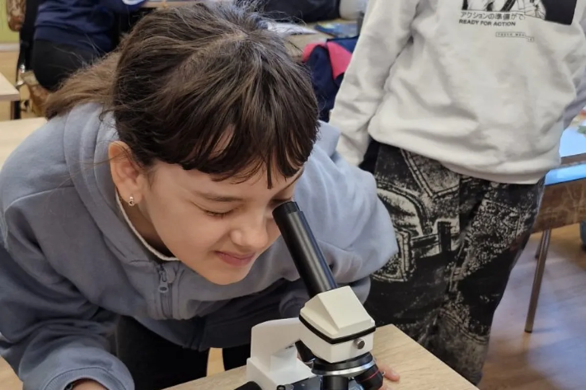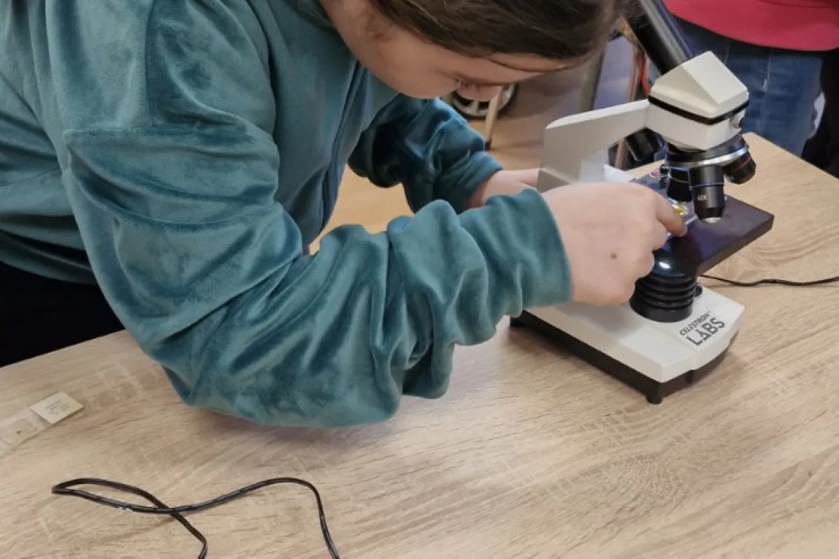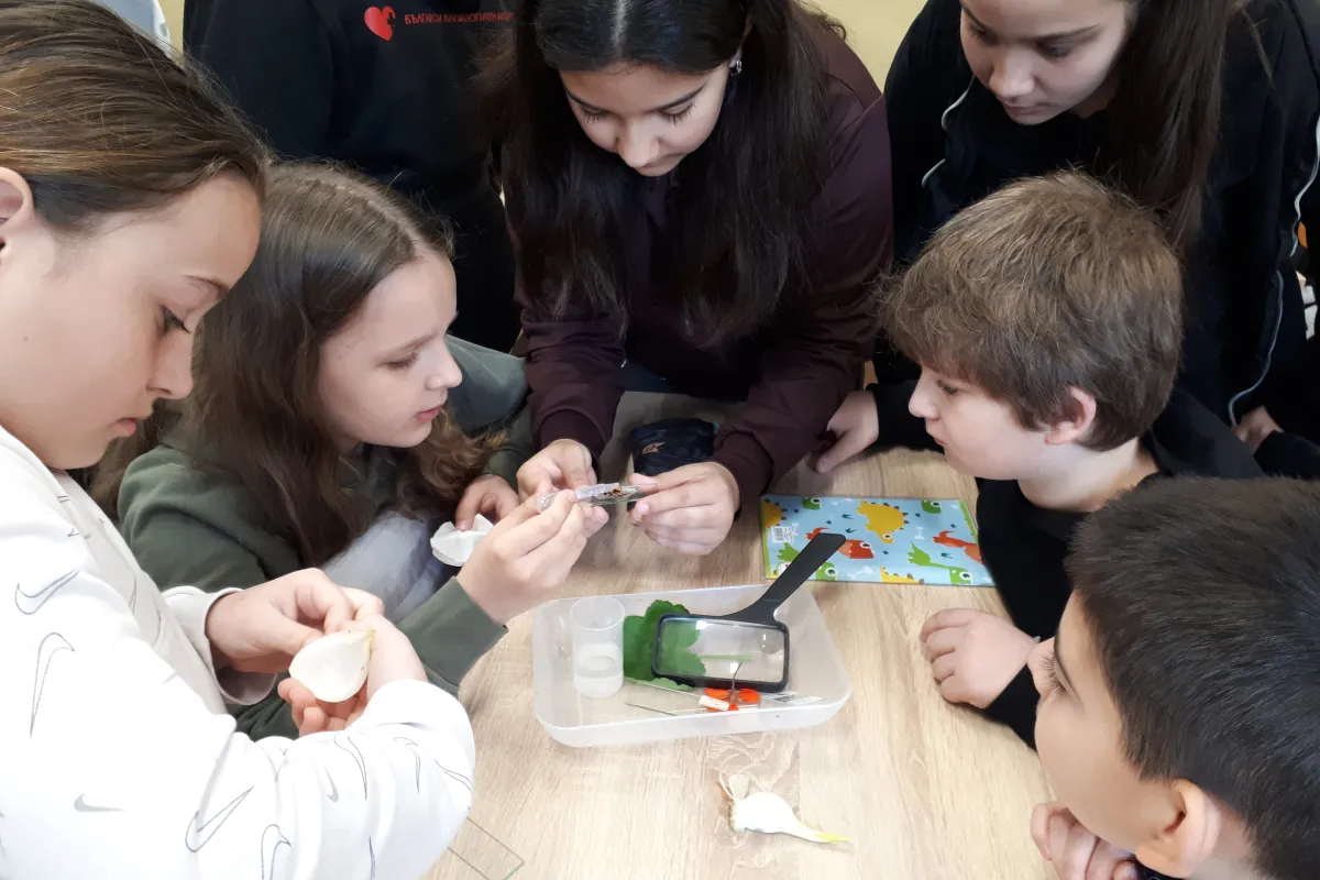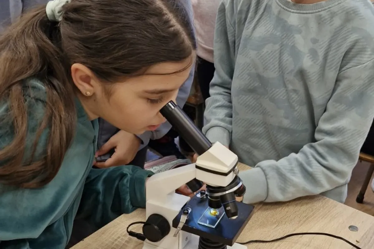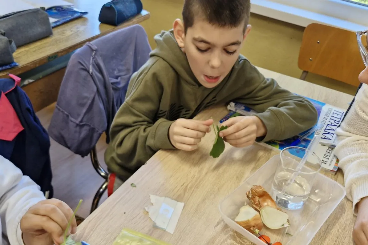 Заедно с г-жа Поля Попминчева (учител в прогимназиален етап) и г-жа Зорка Ненчева (учител в прогимназиален етап), момичетата и момчетата наблюдаваха растителни клетки с увеличителни уреди - лупа и микроскоп.