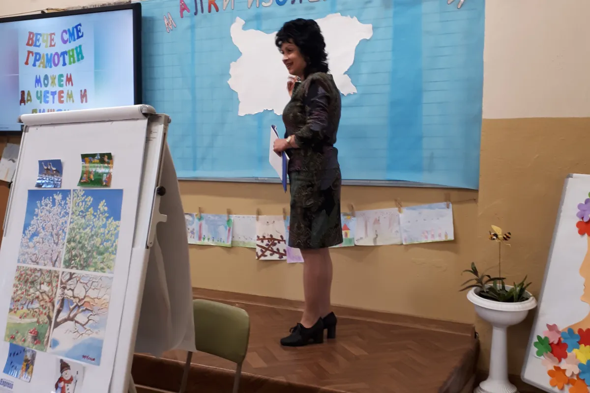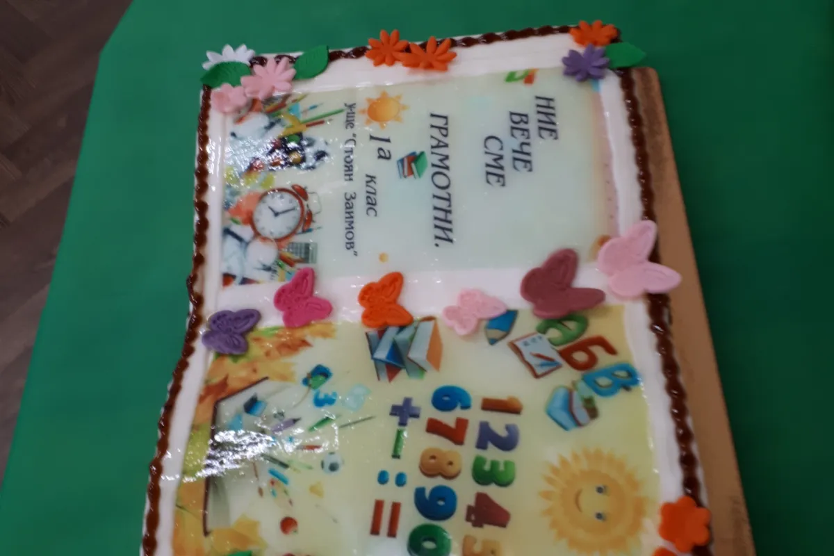 Г-жа Василева и г-жа Пешева благодариха на родителите, които бяха неотлъчно до децата през цялата година, и им пожелаха със сила, воля и кураж да продължат уверено по пътя към нови върхове. Завършихме празника с грамоти, подаръци, песен и сладка торта, а в очите на всички грееше гордост и радост от първата постигната победа – грамотността.