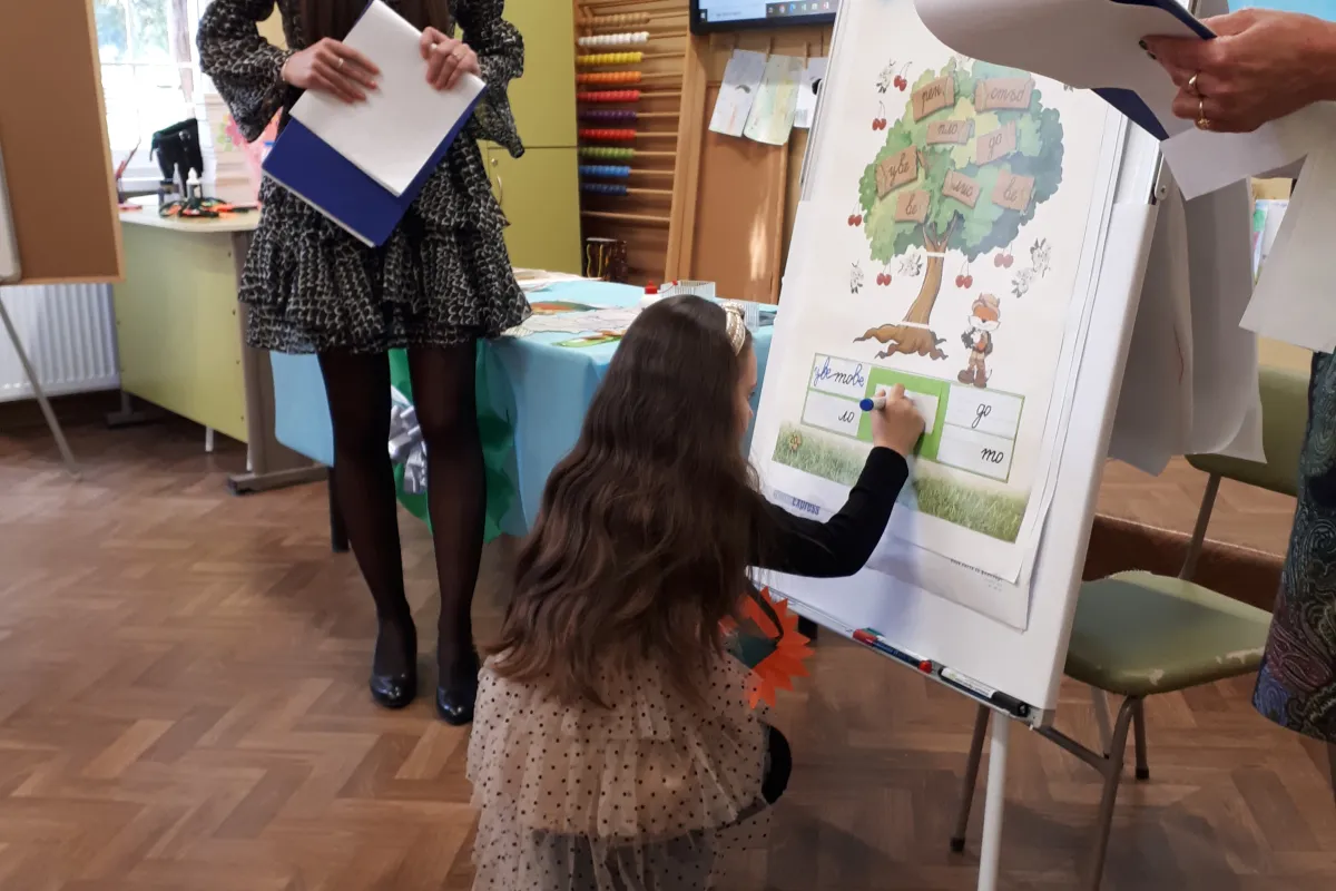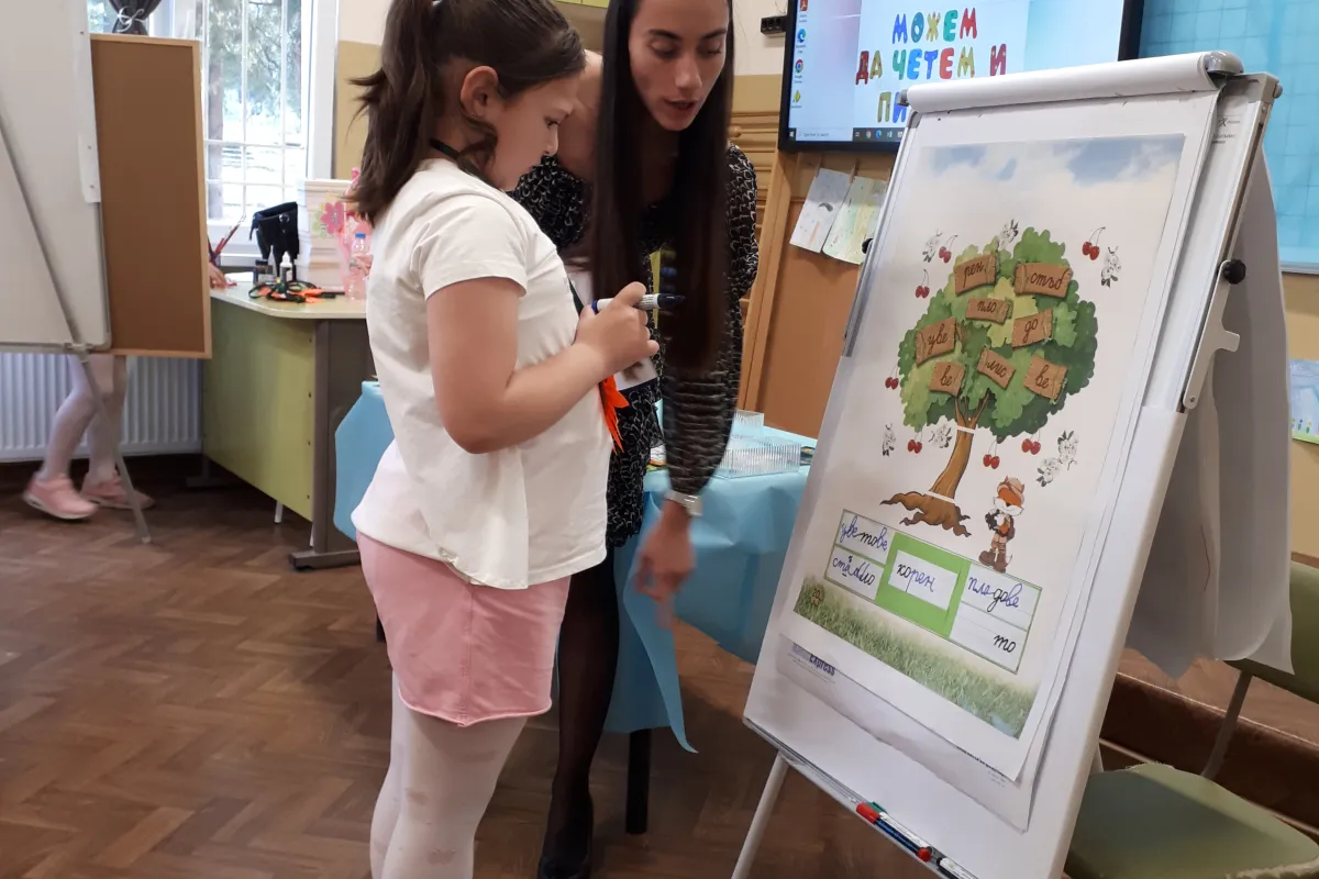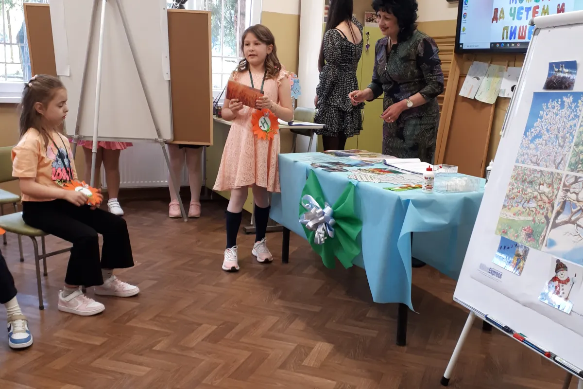 Не подминахме и царицата на науките – математиката. Чрез забавни загадки и игри разпознаваха цифри и геометрични фигури. Говорихме за личната хигиена, грижата за природата, и разказвахме кой какво прави, докато преминаваха през вълнуващ лабиринт. След това от скритите срички в короната на дърво, учениците съставиха думи и изписваха неговите части, а после го свързаха с промените през сезоните.