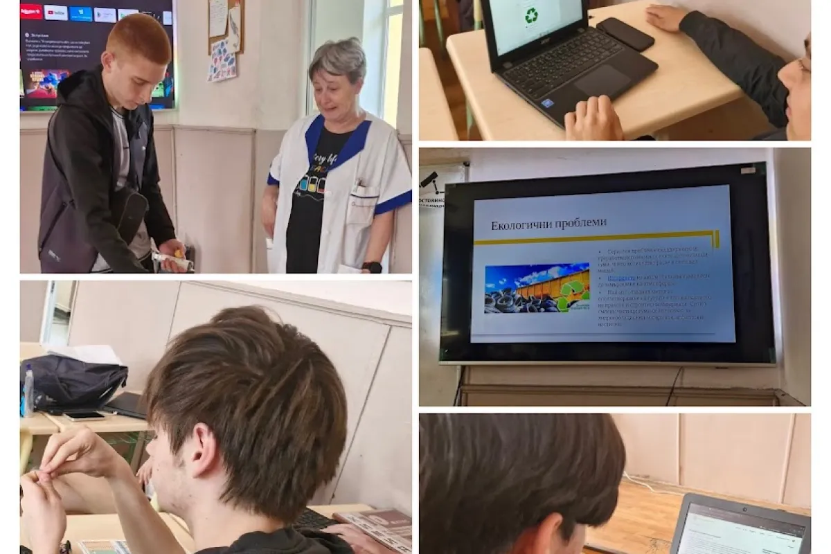 В часът по ХООС учениците използваха приложението G Forms - за актуализиране на знанията. Основен инструмент е G презентация, в която чрез линкове те достъпваха до текстове (напр. научен текст за откриването на каучука), до клипове (за екологичнито въздействие) и др. Учител е г-жа Морозова.