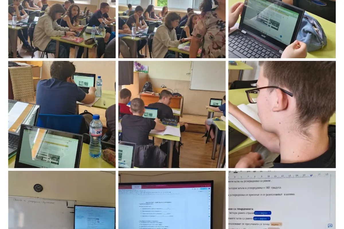 По Математика учениците решаваха кръстословица, съставена от учителя - г-жа Спирдонова, чрез която припомниха основни термини по темата. След това всеки ученик решава задачи в Работен лист. Споделяха екраните от Хромбуците си - на екрана в класната стая и така показваха решенията на задачите си. Устно аргументираха отговорите си.
