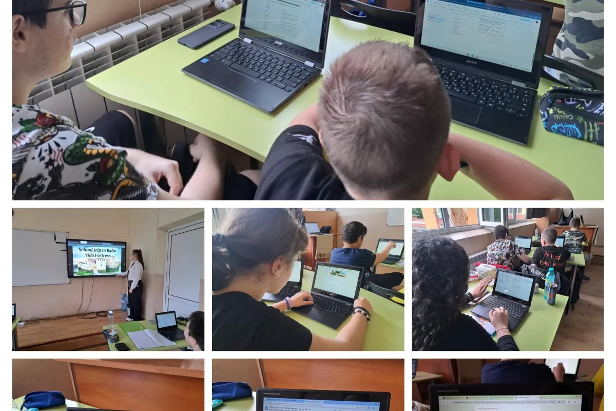 В урокът по Английски език в VIIб клас, на тема “Описание на еко - ваканция”, г-жа Катя Ботева бе подготвила за учениците да използват Google Формуляри, Текстови файл - за работен лист, Презентации - за демонстрация на проектите.