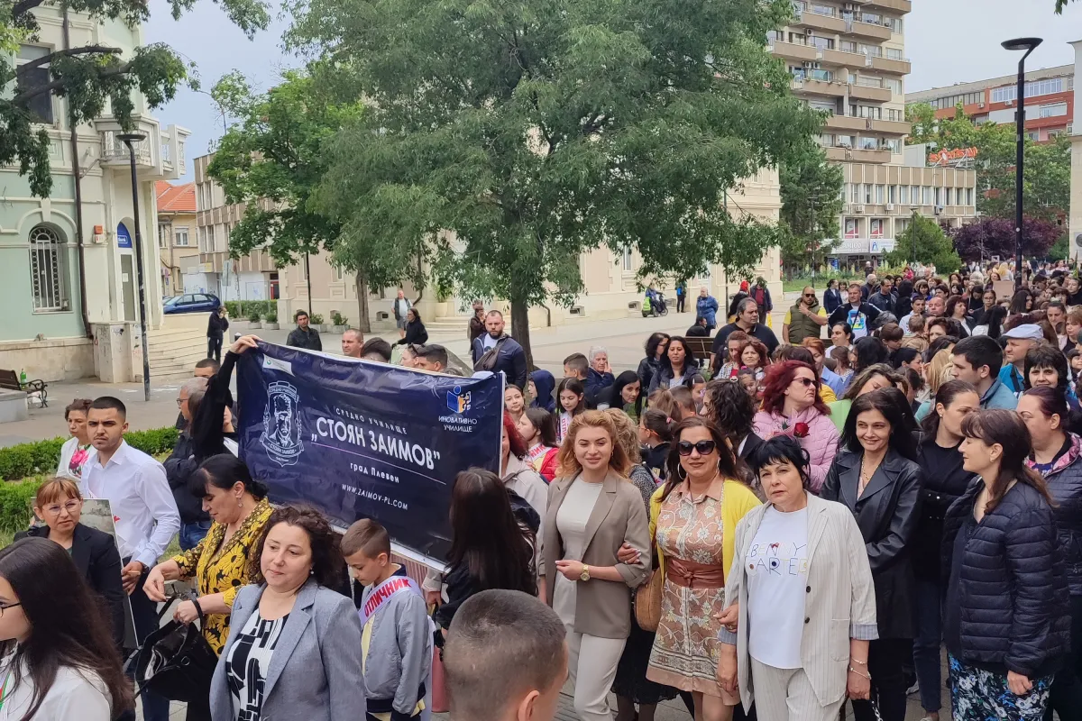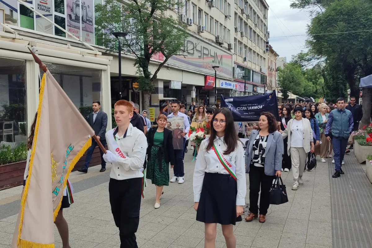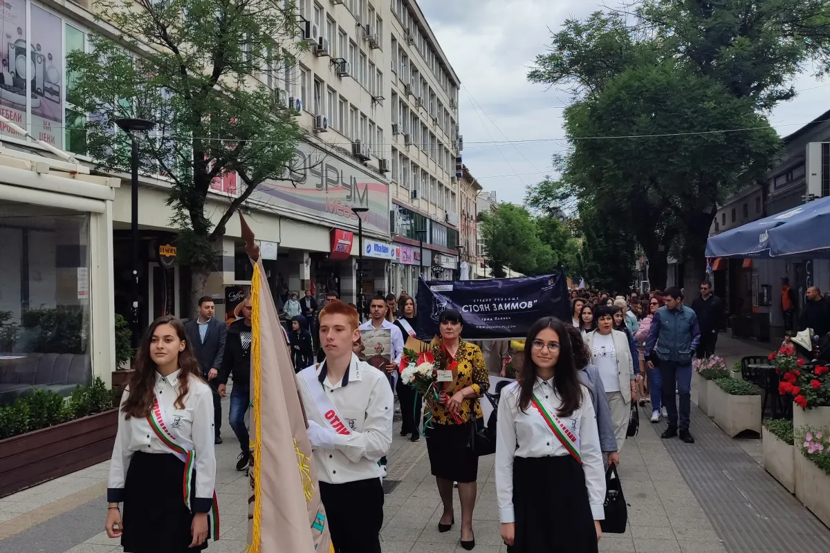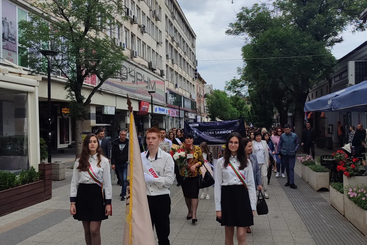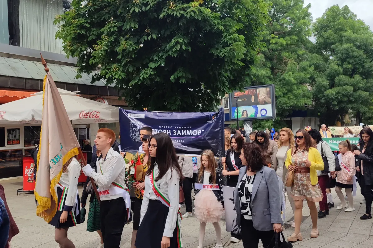С празнично шествие и тържествена церемония в Плевен бе отбелязан 24 май - Ден на светите братя Кирил и Методий, на българската азбука, просвета и култура и на славянската книжовност. СУ ,,Стоян Заимов" бе част от присъстващите стотици ученици, учители, граждани и институции.