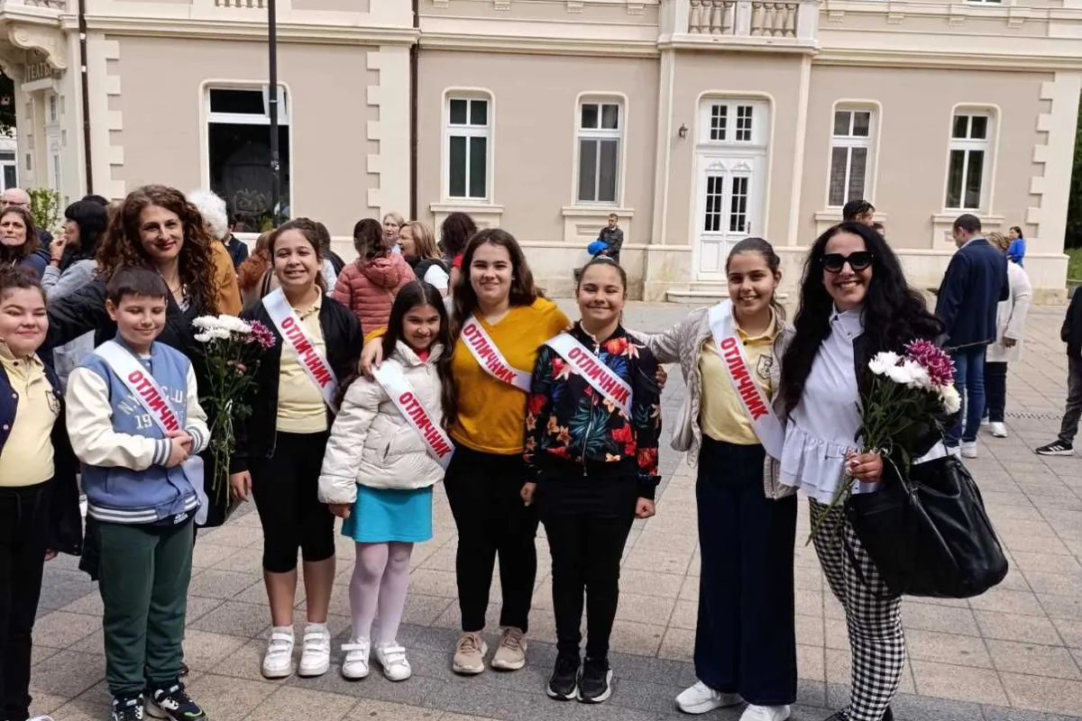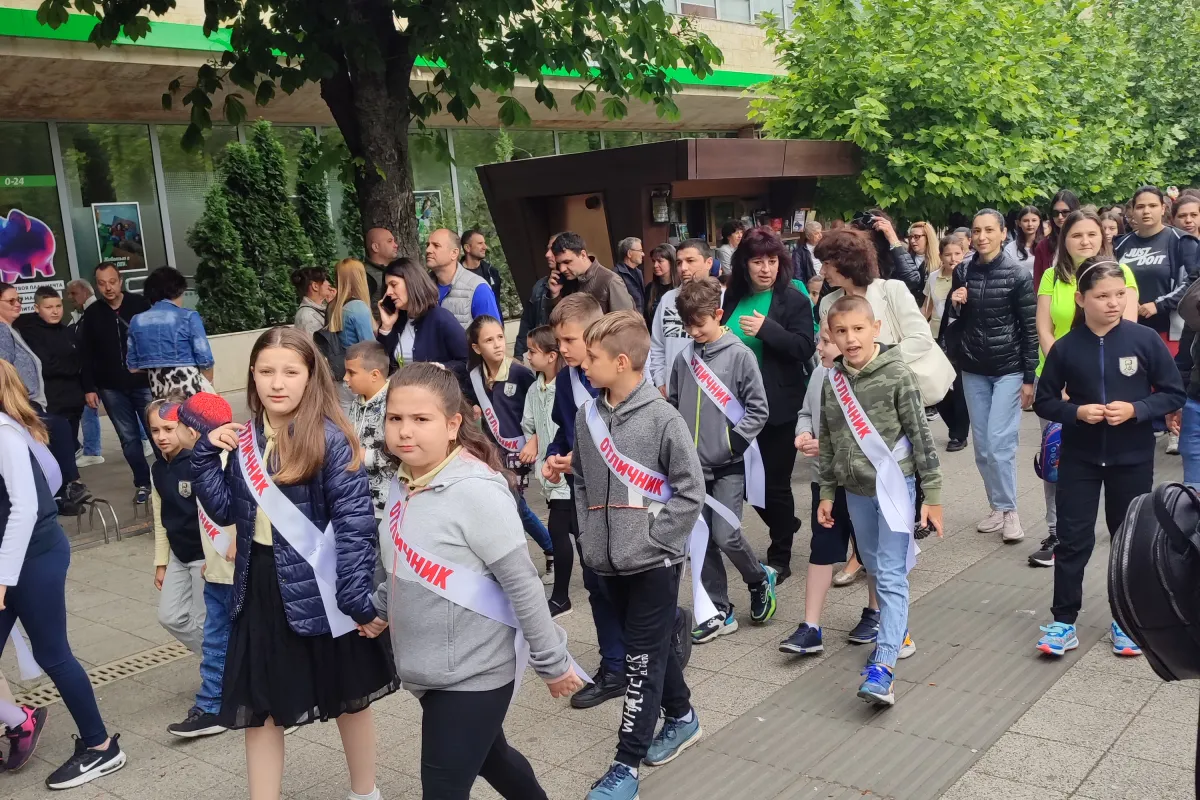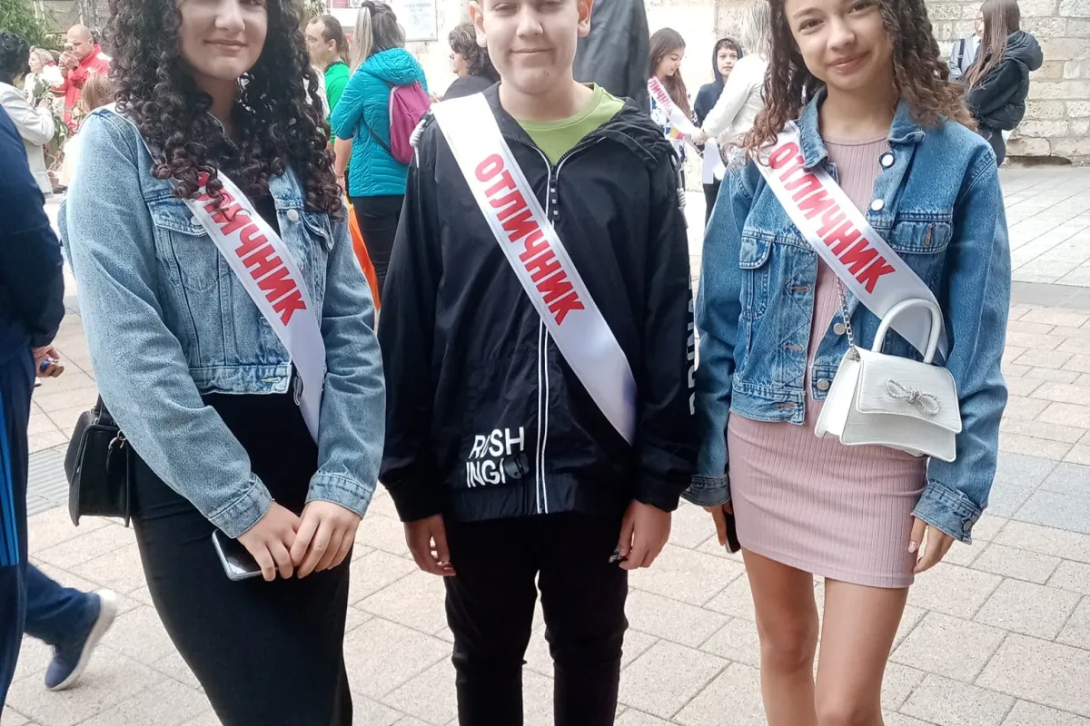 Учениците, носители на отличен успех с гордост носеха лента ,,Отличник", което предизвика възгласи на поздравления, умиление и радост!