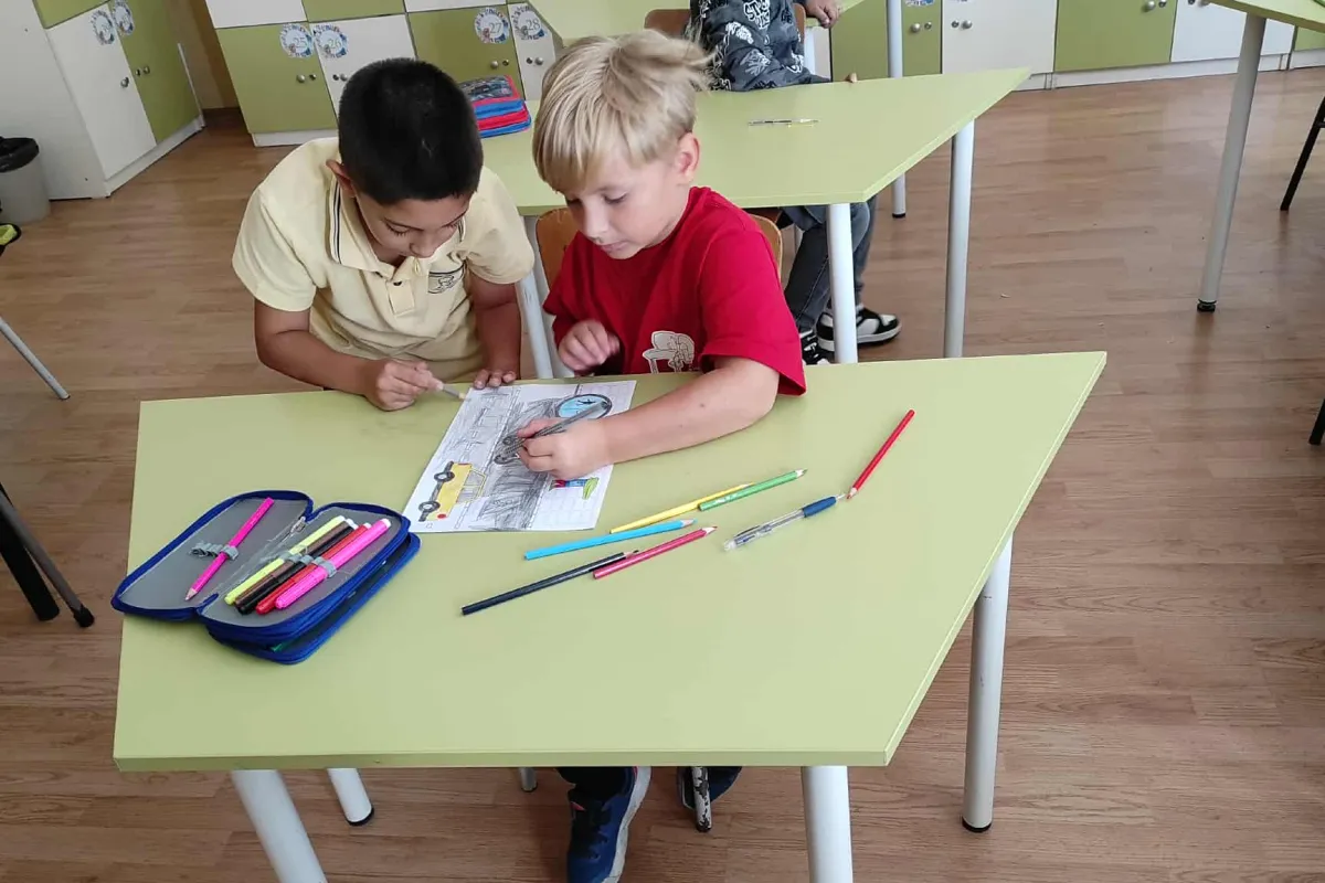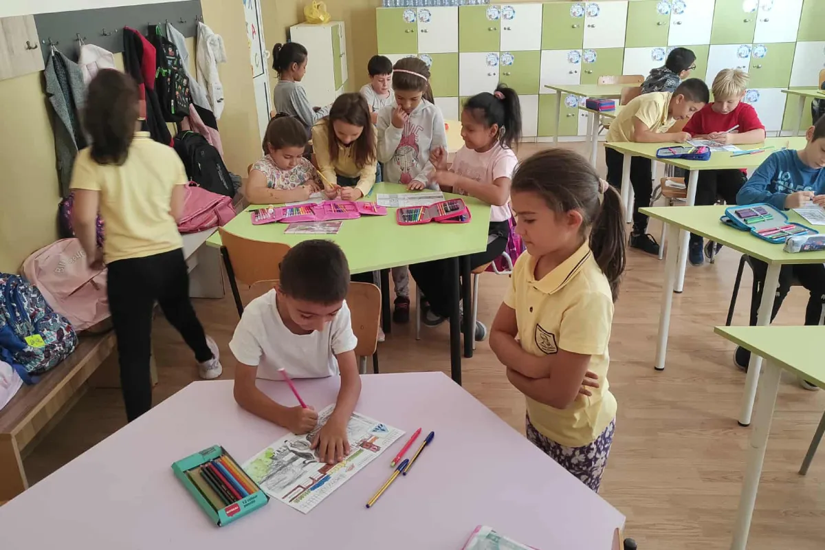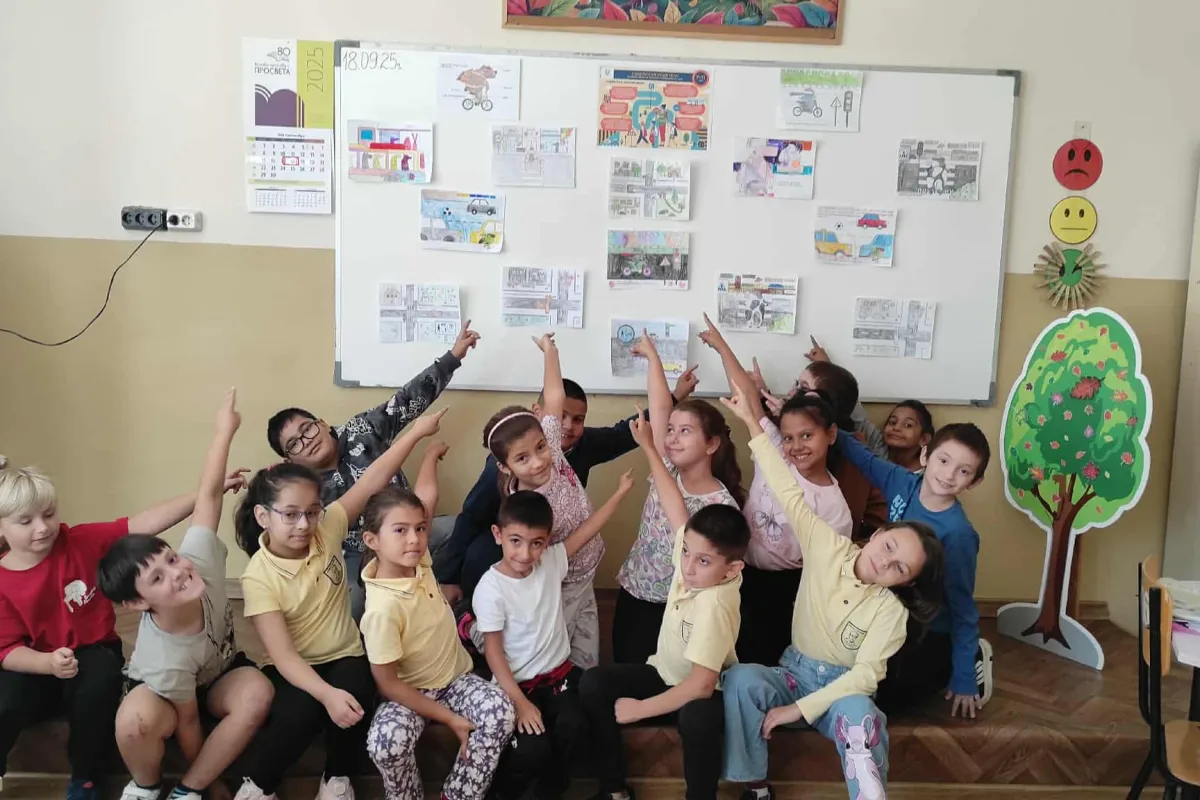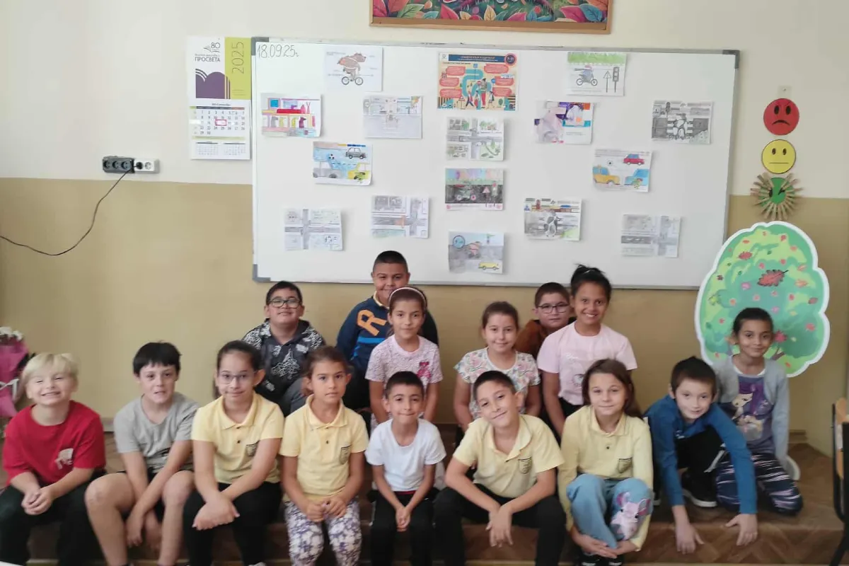Днес, 18.09.2025 година, учениците от IIб клас оцветяваха книжки с шаблони, посветени на безопасността на движение по пътищата. Класен ръководител е г-жа Катя Пенкова.