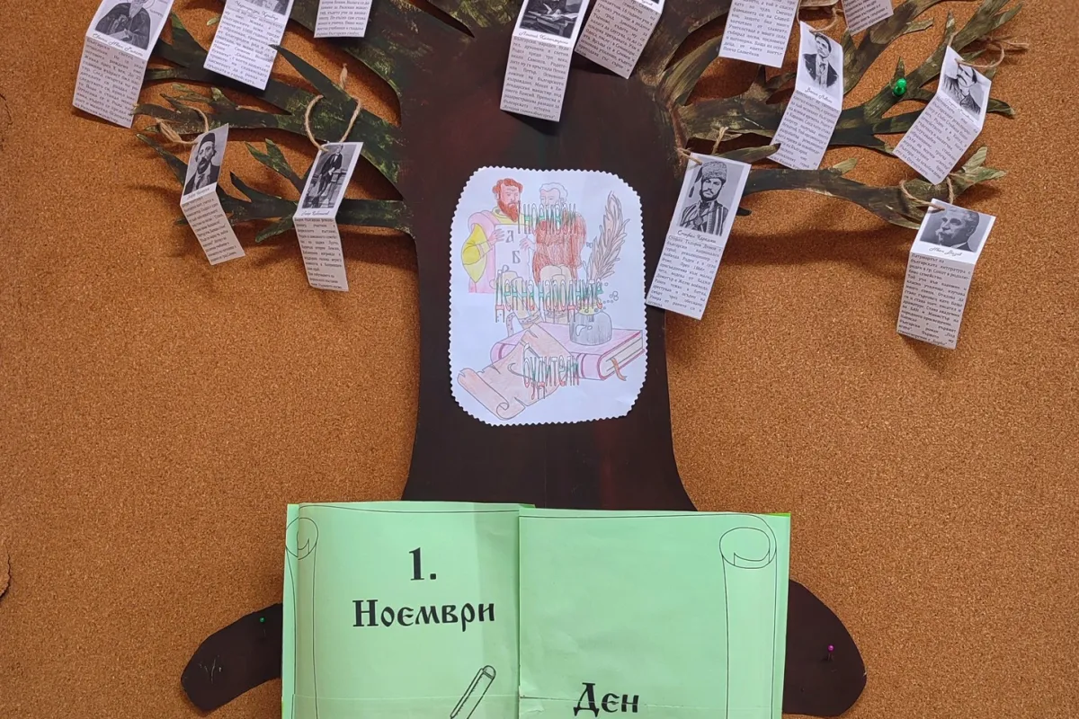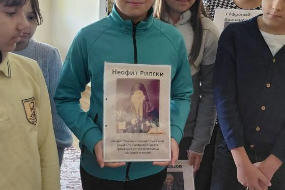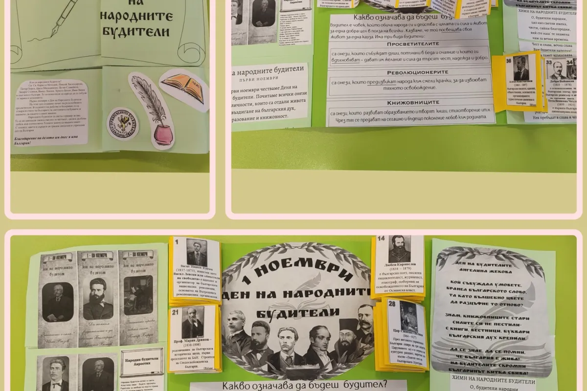 Учениците от I в клас (екип Елена Василева и Ирина Тодорова) създадоха детайлни табла и впечатляващ 3D макет на будителите.