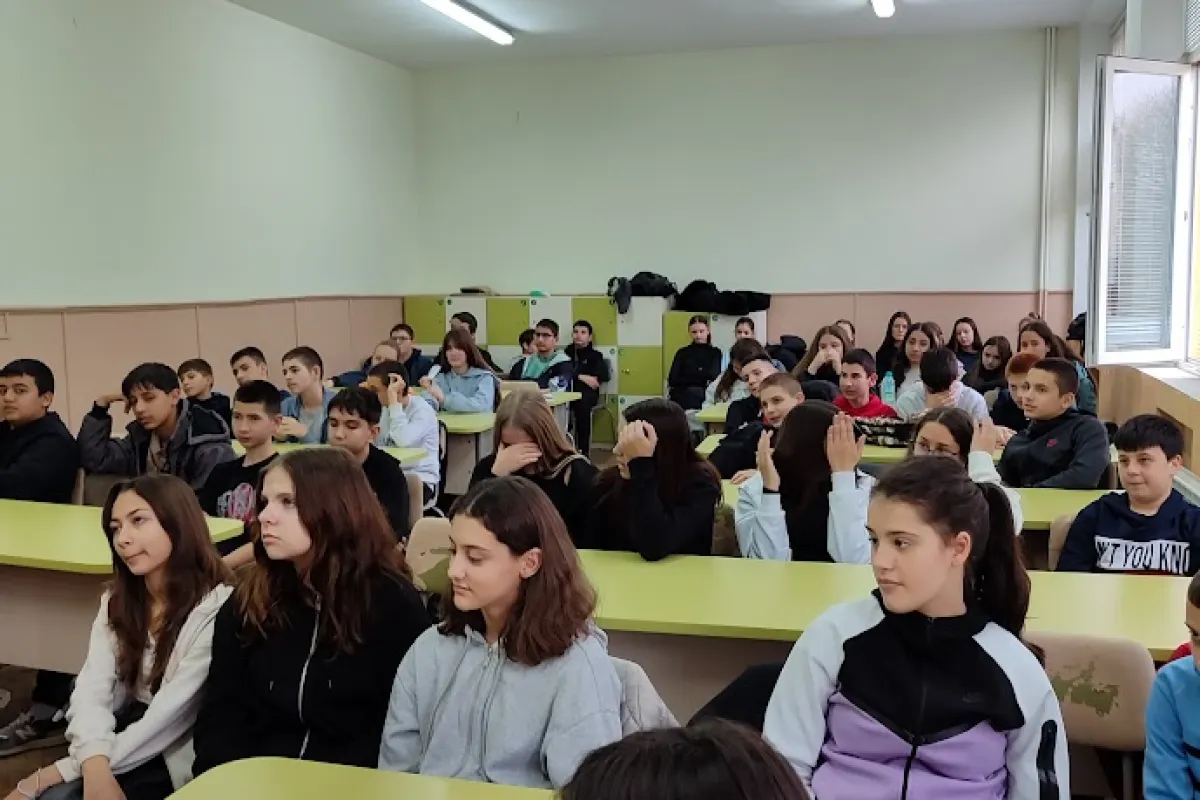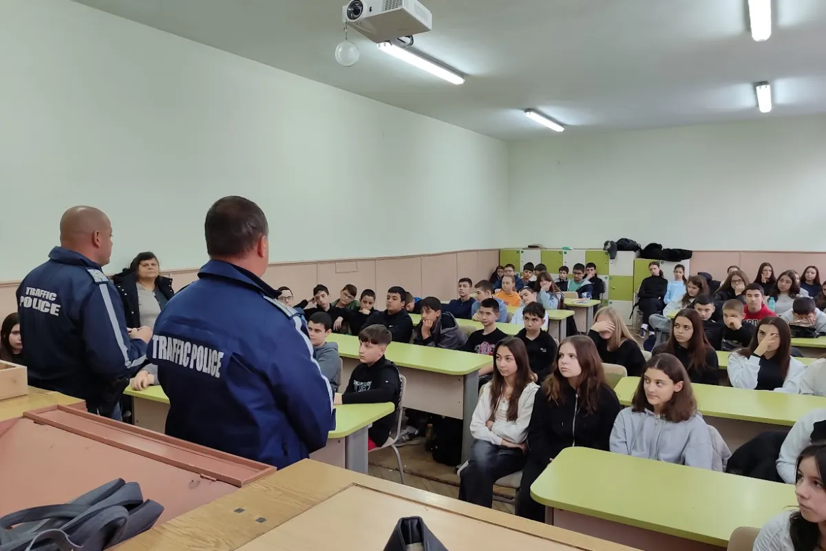 Прогимназията: Актуален диалог с Пътна полиция Седмокласниците (7. А, 7. Б и 7. В) се включиха в дискусия с представители на МВР, сектор „Пътна полиция“. Акцентът на срещата бе поставен върху съвременните предизвикателства – движението с велосипеди, тротинетки и опасностите от носенето на слушалки на улицата. Срещата премина под мотото на тазгодишната кампания за нови правила на улицата.