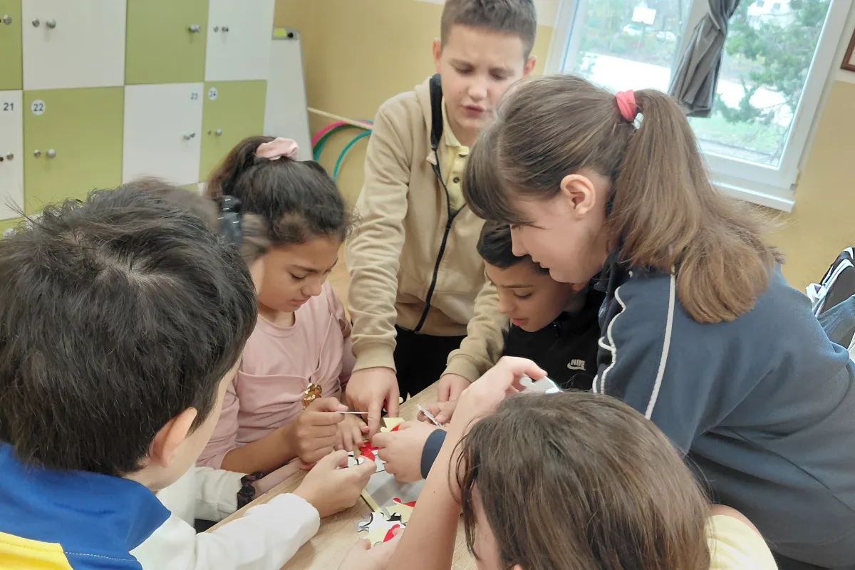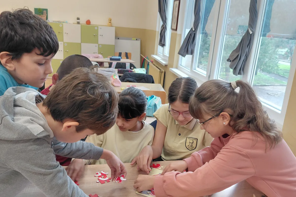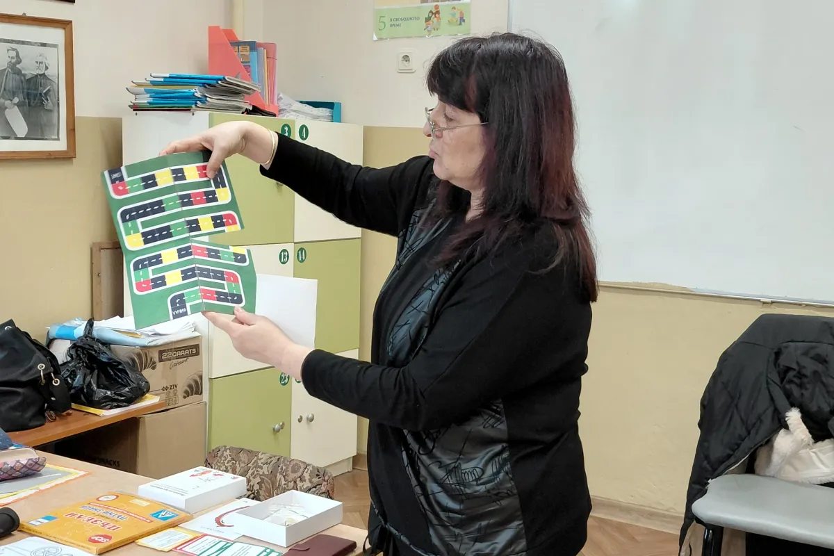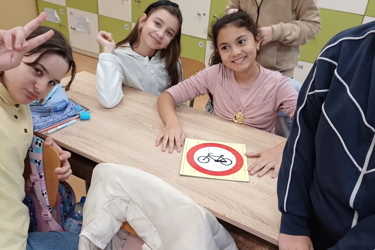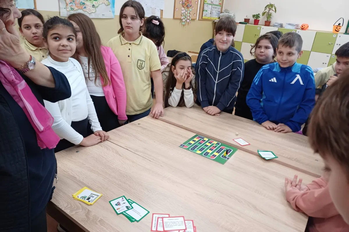 Най-малките: Учим чрез игра Учениците от 4. А клас, с гост г-жа Поля Николова, затвърдиха знанията си чрез интерактивни методи. Четвъртокласниците обсъждаха сложни пътни ситуации, анализираха поведението на пешеходци и водачи и подреждаха пъзели с пътни знаци. Основният извод за тях бе, че да си пешеходец е важна и отговорна роля в движението.