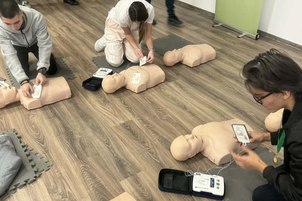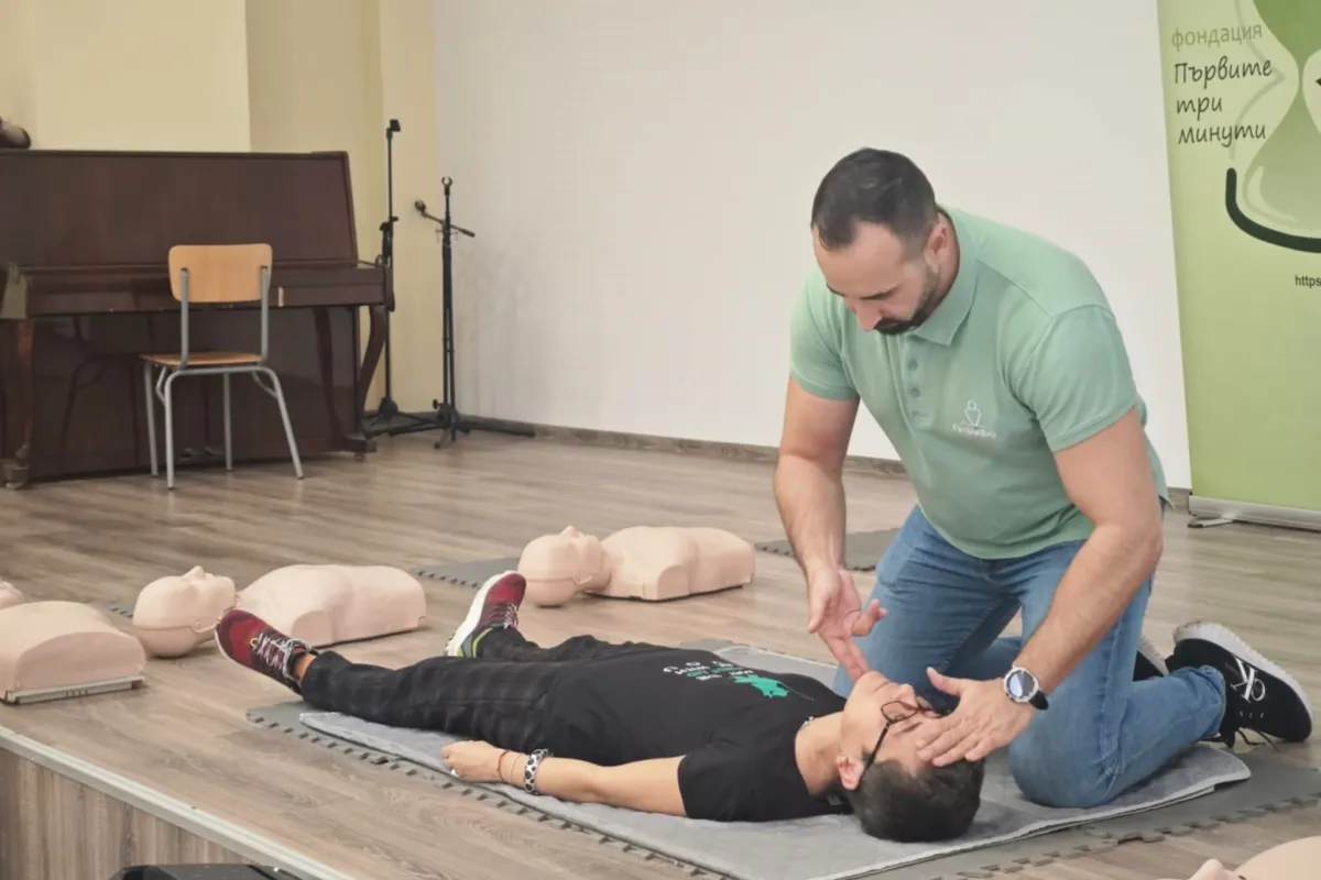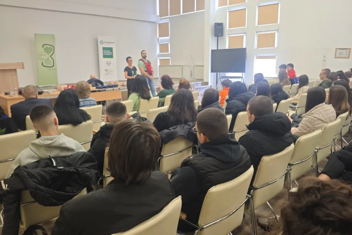 Обучението е част от програмата на фондация „Първите три минути“ и Groupama Застраховане, чиято цел е да подготви младите хора за адекватна реакция в критични ситуации. В присъствието на кмета на Община Плевен д-р Валентин Христов, нашите ученици имаха възможност да приложат наученото на практика.