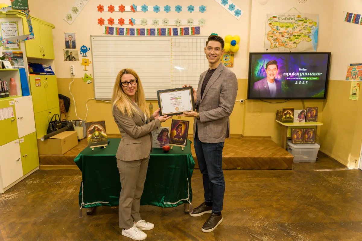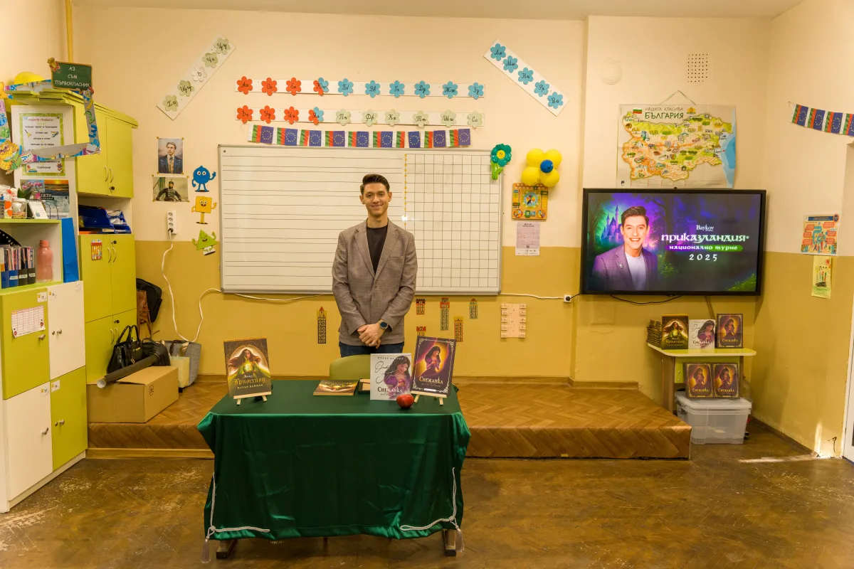 По повод Деня на четенето специален гост в нашето училище бе неповторимият Петър Байков, който представи своите книги „Снежанка“ и „Грихнхилд“ по един изключително раздвижен, интерактивен и впечатляващ начин пред учениците от начален етап. За децата това бе истински празник, изпълнен с вдъхновение и много емоции.